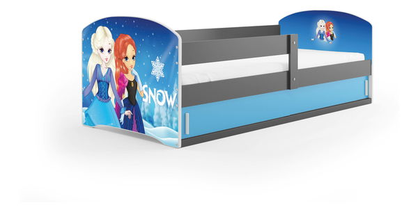Detská posteľ 80 x 160 cm Lukan (grafit + vzor snow) (s roštom, matracom a úl. priestorom)