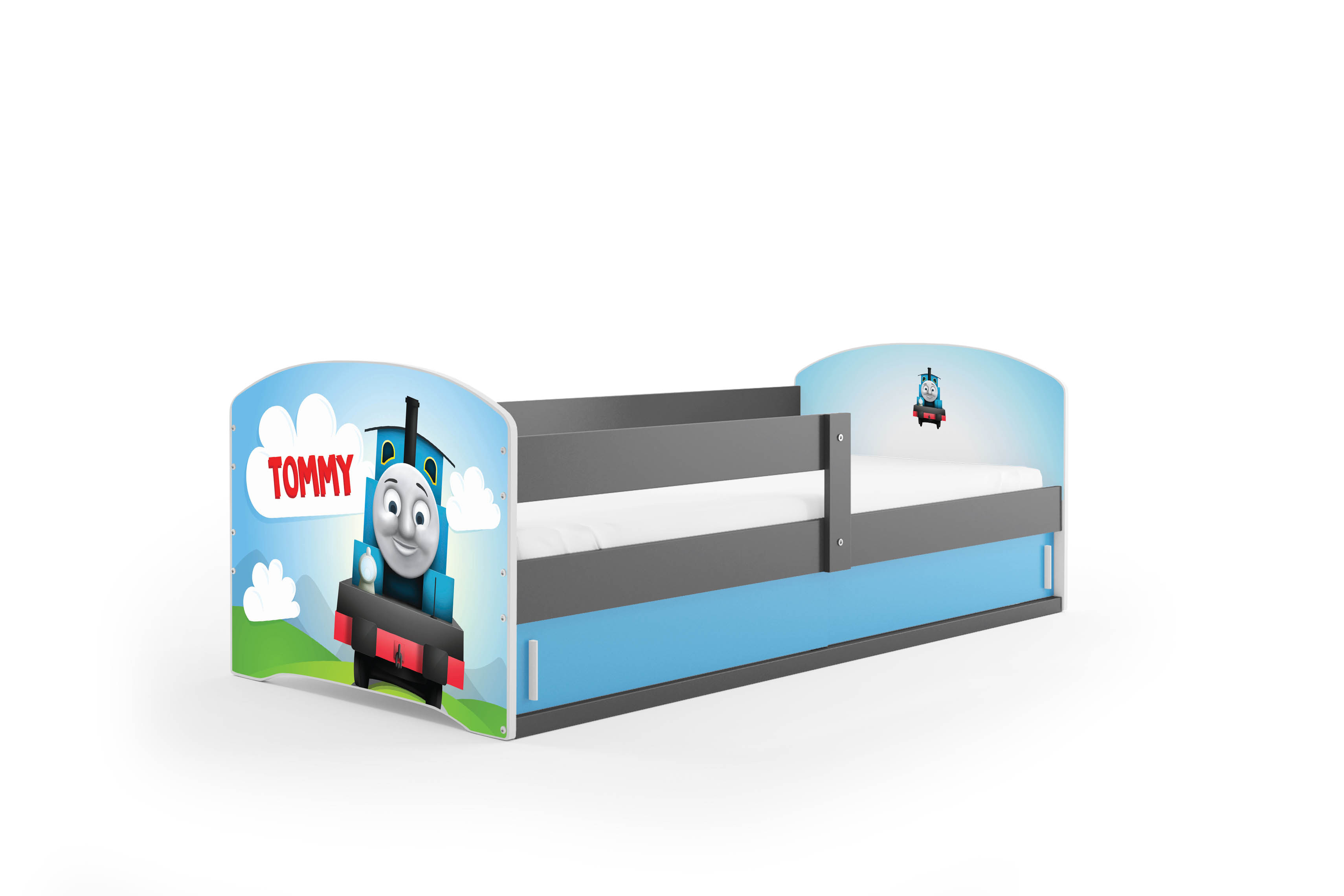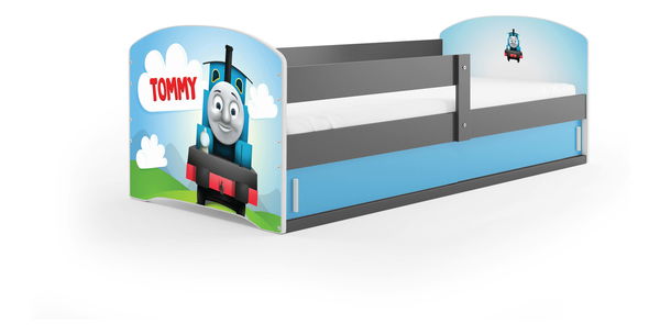 Detská posteľ 80 x 160 cm Lukan (grafit + vzor tommy) (s roštom, matracom a úl. priestorom)