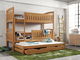 Poschodová posteľ Blair je pohodlným modelom vhodným pre tri menšie deti. Hodí sa aj do menšej detskej izby. Posteľ má tri lôžka. Tretie lôžko sa dá jednoducho vysunúť. Výška od zeme po horné lôžko je 135 cm, výška od zeme po stredné lôžko je 50 cm a výška po spodné lôžko je 35 cm. Výška najspodnejšieho lôžka je o 10 cm menšia ako lôžka nad ním. Horné a stredné lôžka majú ochranné bariéry. Chránia deti pred vypadnutím z postele. Posteľ Blair je vyrobená z borovicových dosiek, má stabilnú a pevnú konštrukciu. Posteľ disponuje aj praktickým úložným priestorom v podobe dvoch zásuviek na posteľnú bielizeň a hračky.