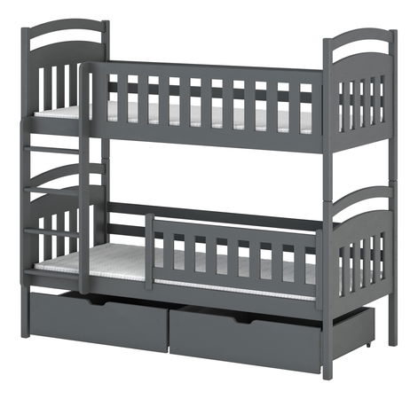 Poschodová posteľ Penny je vysoká posteľ vhodná do detskej izby. Obzvlášť je vhodná pre súrodencov. Poschodové postele šetria veľa miesta, preto sa odporúčajú do menších miestností. Posteľ Penny je vybavená vysokými bariérami. Na hornom lôžku majú priečky výšku 25 cm, na spodnom lôžku sú priečky vysoké 34 cm. Bariéry chránia deti pred vypadnutím z postele. Na horné lôžko vedie rebrík. Posteľ je vyrobená z borovicového dreva a je pevná a stabilná. Praktickým doplnkom je aj úložný priestor v podobe dvoch zásuviek v spodnej časti postele. Gumené kolieska zásuviek nepoškriabu podlahu.