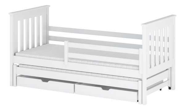 Rozkladacia posteľ Toya je nižšia posteľ určená najmä pre deti, napríklad pre dvoch súrodencov. Posteľ je zvlášť vhodná pre malé deti. Horné lôžko má okolo rámu bariéry. Bariéry chránia dieťa pred vypadnutím z postele. Bariéry je možné kedykoľvek odmontovať. Spodné lôžko je umiestnené pod horným a dá sa jednoducho vytiahnuť a pripraviť na spanie. Posteľ nezaberá veľa miesta a hodí sa do menších detských izieb. K dispozícii je aj praktický úložný priestor, kam si môžete uložiť posteľnú bielizeň alebo hračky.