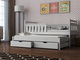 Detská posteľ DORIA s roštom a úložným priestorom je ideálnym riešením pre detskú izbu s viacerými deťmi. Horné lôžko disponuje bariérou, ktorá chráni deti pred vypadnutím z postele a je možné ju kedykoľvek odmontovať. Druhé miesto na spanie je umiestnené pod rámom postele a zaberá tak rovnaký priestor ako jednolôžková posteľ. Posteľ je vyrobená z borovicového dreva, lakovaná a striekaná pomocou ekologicky bezpečných farieb. V cene postele nie je zahrnutý matrac, no môžete si ho vybrať a priobjednať z ponuky. Posteľ je certifikovaná v súlade s normou EN-747-1:2012+A1:2015 a farby sú bezpečné pre deti.