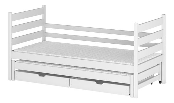 Rozkladacia posteľ Monty je nižšia posteľ, ktorá je určená pre 2 osoby. Hodí sa do detskej, alebo študentskej izby. Posteľ zaberá toľko miesta ako štandardná jednolôžková posteľ. Je to skvelé riešenie do menšej izby. Posteľ Monty je vyrobená z borovicových dosiek. Všetky farby a laky použité vo výrobnom procese musia mať požadované certifikáty. Posteľ má úložný priestor v podobe dvoch zásuviek. Gumené kolieska nepoškriabu podlahu.