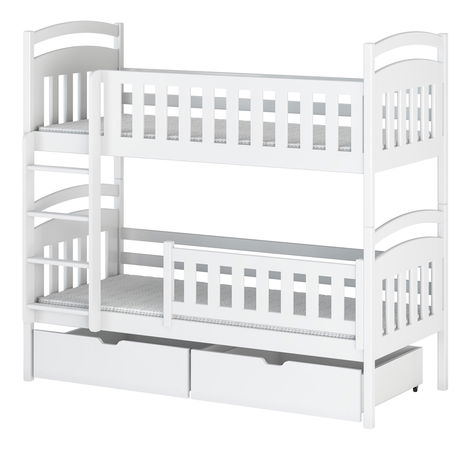 Poschodová posteľ Penny je vysoká posteľ vhodná do detskej izby. Obzvlášť je vhodná pre súrodencov. Poschodové postele šetria veľa miesta, preto sa odporúčajú do menších miestností. Posteľ Penny je vybavená vysokými bariérami. Na hornom lôžku majú priečky výšku 25 cm, na spodnom lôžku sú priečky vysoké 34 cm. Bariéry chránia deti pred vypadnutím z postele. Na horné lôžko vedie rebrík. Posteľ je vyrobená z borovicového dreva a je pevná a stabilná. Praktickým doplnkom je aj úložný priestor v podobe dvoch zásuviek v spodnej časti postele. Gumené kolieska zásuviek nepoškriabu podlahu.