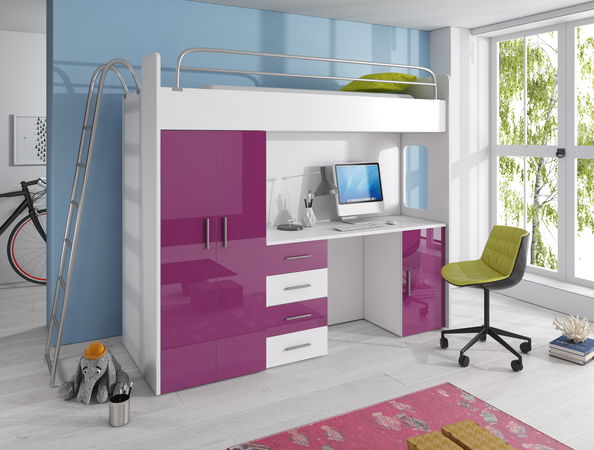 Detská posteľ Ruby IV D (Biela + Fialová) (s roštami)