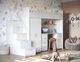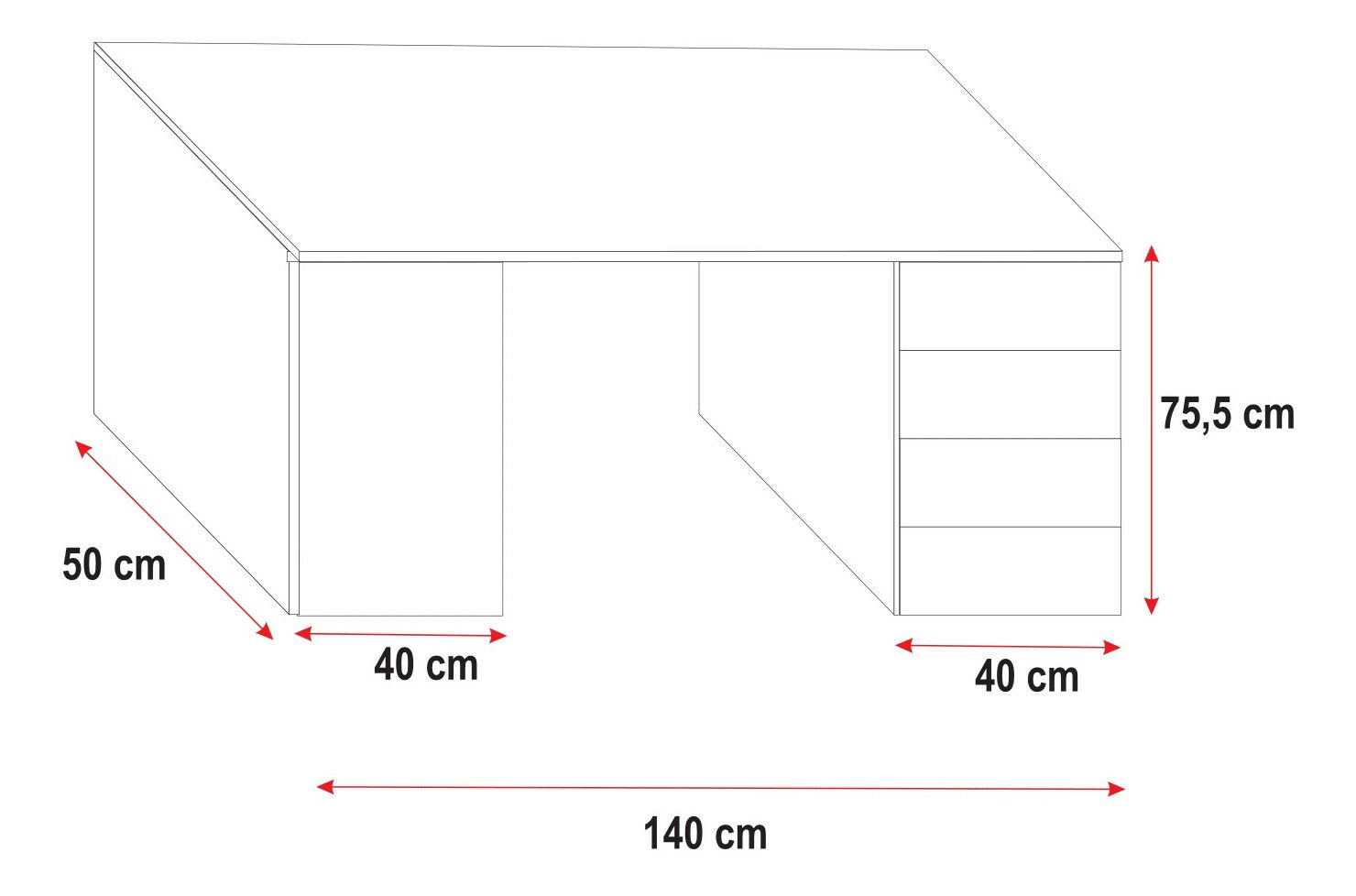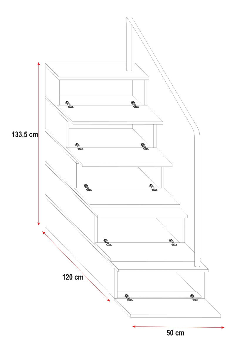 Set do detskej izby obsahuje praktické riešenia pre menšie interiéry. Vyrobené z kvalitnej MDF dosky, s akrylovým povrchom dvierok a zásuviek s hrúbkou 0,8 mm. Súčasťou sú detská posteľ, PC stolík, skriňa a schody. Rozmery posteľ: 180 x 204 x 86 cm, PC stolík: 75,5 x 140 x 50 cm, skriňa: 138 x 60 x 50 cm, schody: 133,5 x 50 x 120 cm. Nosnosť až 80 kg. Rošt latový, plocha spania 80x200 cm. Odporúčaný penový matrac s výškou 15 cm. Úložný priestor zabezpečujú skriňa a PC stolík.