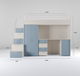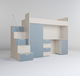 Set do detskej izby obsahuje praktické riešenia pre menšie interiéry. Vyrobené z kvalitnej MDF dosky, s akrylovým povrchom dvierok a zásuviek s hrúbkou 0,8 mm. Súčasťou sú detská posteľ, PC stolík, skriňa a schody. Rozmery posteľ: 180 x 204 x 86 cm, PC stolík: 75,5 x 140 x 50 cm, skriňa: 138 x 60 x 50 cm, schody: 133,5 x 50 x 120 cm. Nosnosť až 80 kg. Rošt latový, plocha spania 80x200 cm. Odporúčaný penový matrac s výškou 15 cm. Úložný priestor zabezpečujú skriňa a PC stolík.