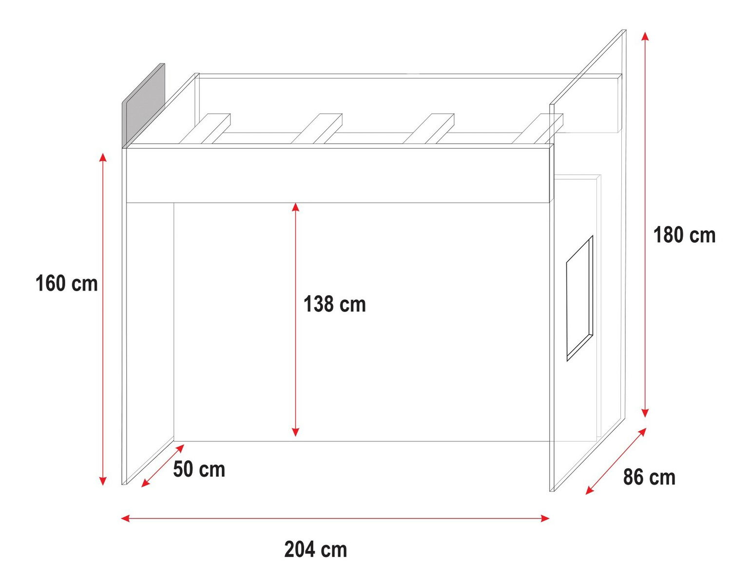 Posteľ: 180 x 204 x 86 cm