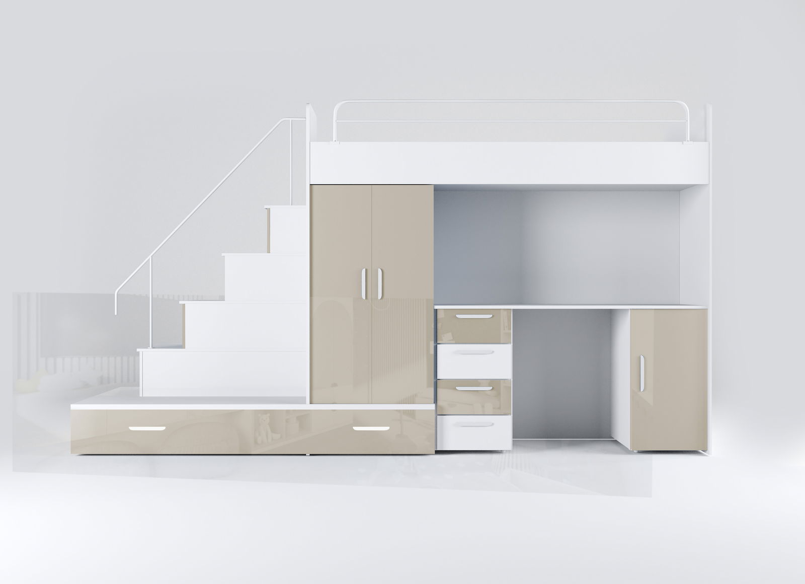 Detská posteľ Ruby V (biela + lesk béžový) (s roštami)