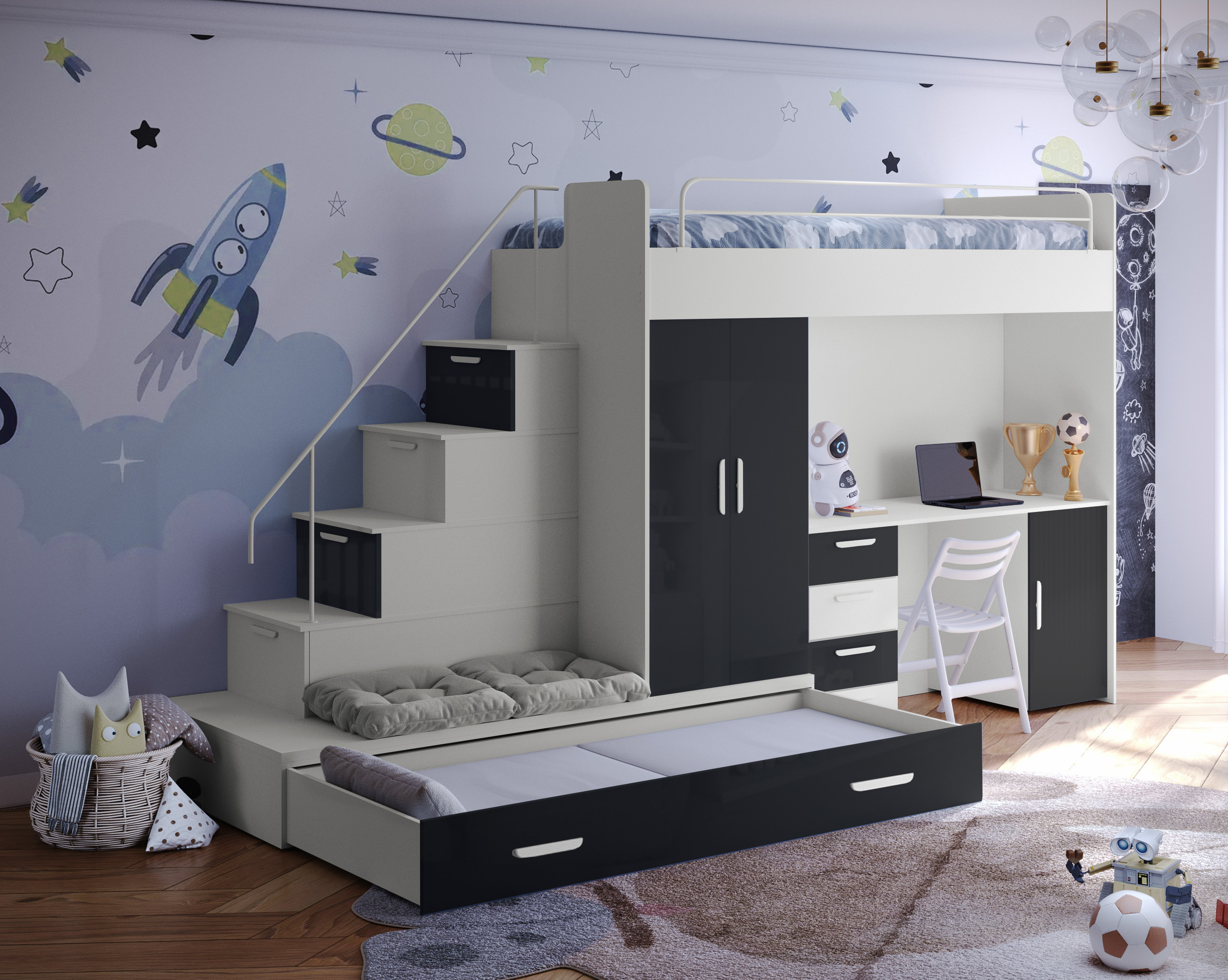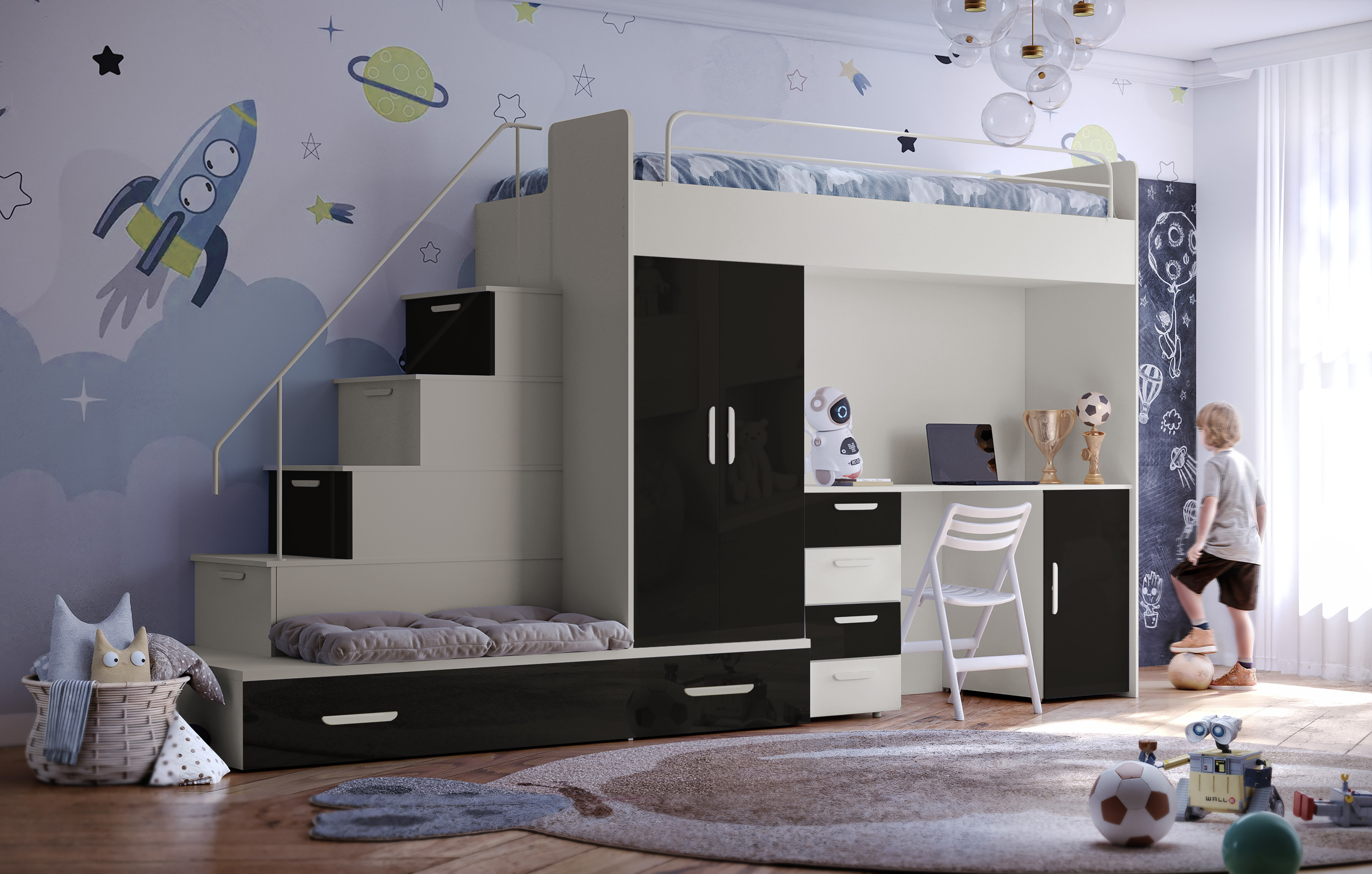 Detská posteľ Ruby V (kašmír + lesk čierny) (s roštami)