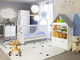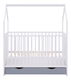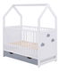 Detská postieľka Immi je roztomilá biela postieľka v tvare domčeka, ktorá má bezpečnostnú bariéru proti vypadnutiu a úložný priestor v podobe zásuvky. Posteľka je vyrobená z borovicového dreva, má výšku lôžka 143 cm a výšku bezpečnostných koľajníc 61 cm. Výrobok bol vyrobený s najvyššími bezpečnostnými štandardmi a farby sú vytvorené v súlade s nariadením REACH. Posteľ sa dá vyrábať v univerzálnom prevedení a rám je jedným z najdôležitejších prvkov postele. Manuál k posteli je obrázkový a popisný a postel má gumené kolieska. Posteľ je lakovaná náterom na vodnej báze a je vyrobená z FSC 100% certifikovaných zdrojov. Produkt unesie maximálne zaťaženie až 100 kg na jedno lôžko na spanie. Postieľka nie je dodávaná s roštom a matracom, ktoré si môžete vybrať a priobjednať.