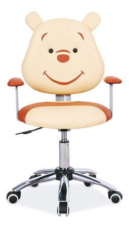 Motív medvedíka je charakteristický pre otočnú stoličku Barni, ktorá bude vhodná do detskej izby. Použité sú neutrálne farby v krémovom podaní. Stoličká má operadlá a rám je vo farbe matného kovu.