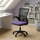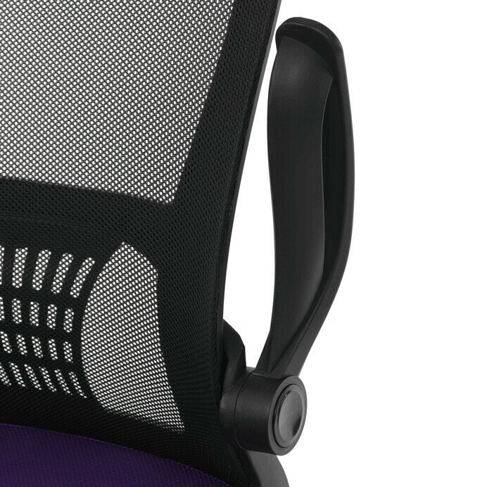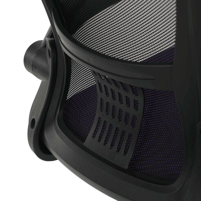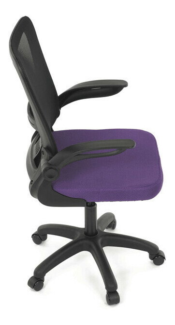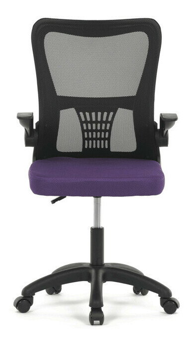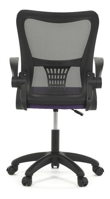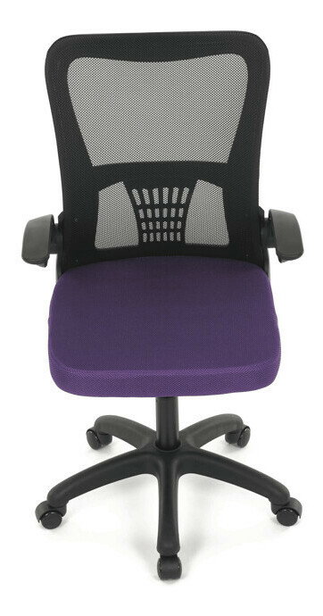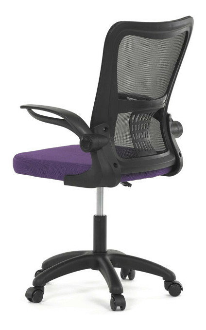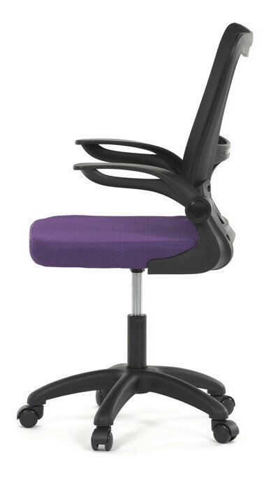 Kancelárska stolička s označením KA-K2006 PUR ponúka komfortné sedenie vďaka širokému sedáku potiahnutému fialovou látkou a priedušnému operadlu z čiernej sieťoviny, ktoré zabezpečuje optimálnu cirkuláciu vzduchu počas práce. Odklápacie plastové podrúčky umožňujú jednoduché prispôsobenie priestoru a uľahčujú zasunutie stoličky pod stôl. Stolička je vybavená hojdacím mechanizmom s možnosťou nastavenia výšky sedáka, čo prispieva k ergonómii a individuálnemu nastaveniu podľa potrieb používateľa. Bedrová opierka integrovaná v operadle podporuje správne držanie tela a znižuje únavu chrbta. Stabilný plastový kríž s kolieskami určenými na tvrdé povrchy zabezpečuje mobilitu a bezpečné používanie na rôznych typoch podláh.