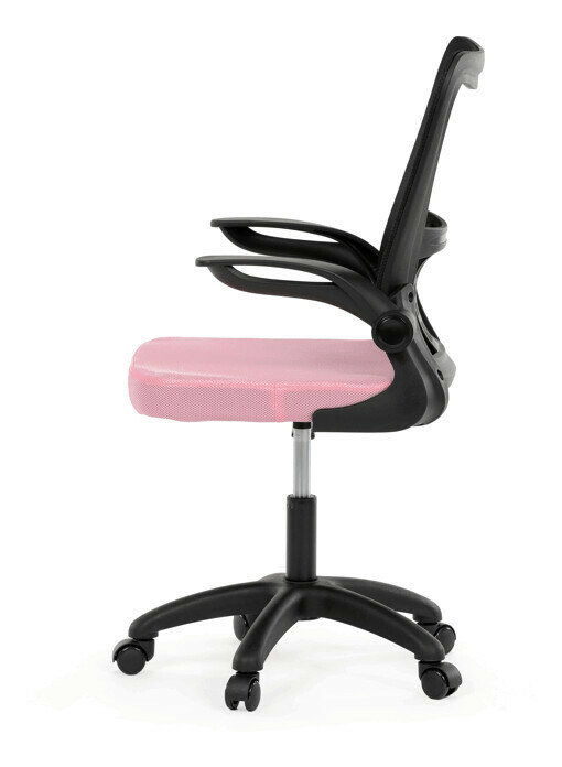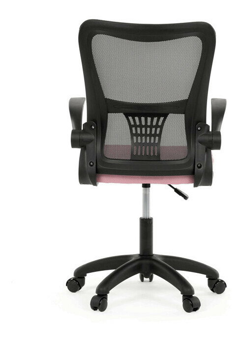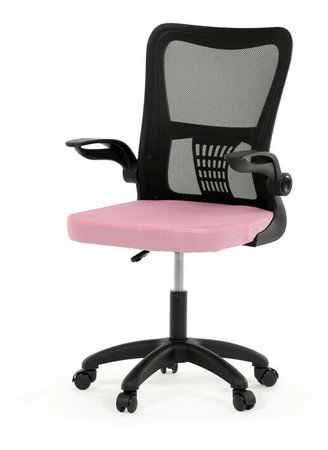 Kancelárska stolička s označením KA-K2006 PINK kombinuje moderný dizajn s funkčnosťou vhodnou na každodennú prácu. Operadlo je vyrobené z čiernej priedušnej sieťoviny, ktorá zabezpečuje optimálnu cirkuláciu vzduchu a podporuje pohodlie pri dlhšom sedení. Sedák je čalúnený ružovou látkou s dostatočnou výplňou pre komfortné sedenie. Odklápacie plastové podrúčky umožňujú jednoduché prispôsobenie pracovného priestoru a zvyšujú flexibilitu používania. Hojdací mechanizmus s možnosťou nastavenia výšky sedáka prispieva k ergonómii a individuálnemu nastaveniu. Plastový kríž zaisťuje stabilitu a kolieska sú určené na tvrdé povrchy, čo umožňuje ľahký pohyb bez poškodenia podlahy. Stolička je vhodná pre používateľov hľadajúcich kombináciu praktickosti a sviežeho farebného akcentu.