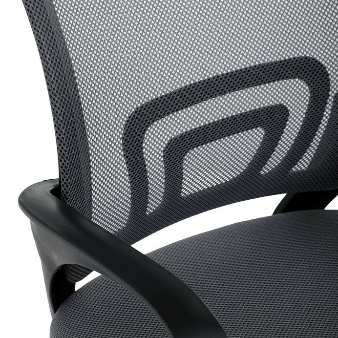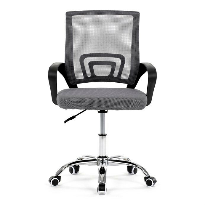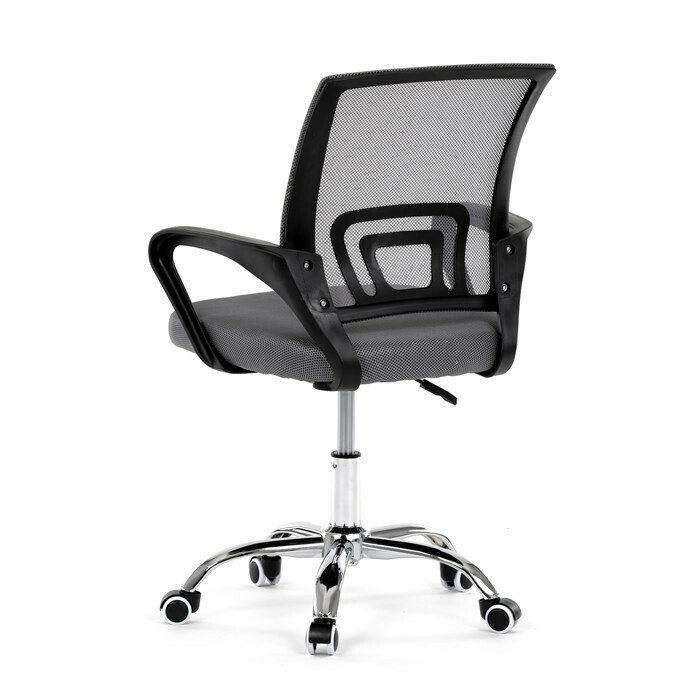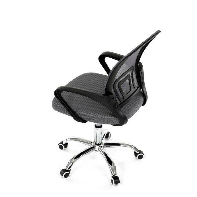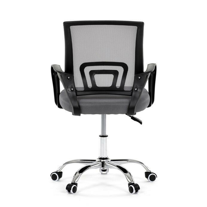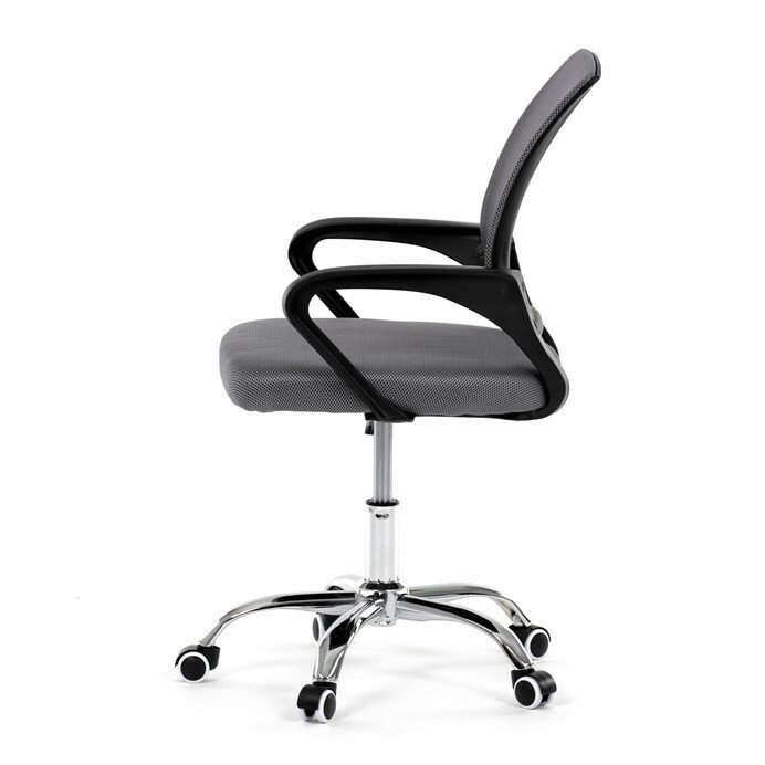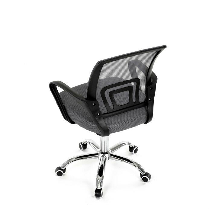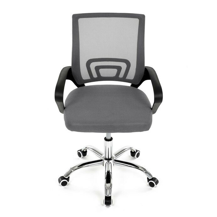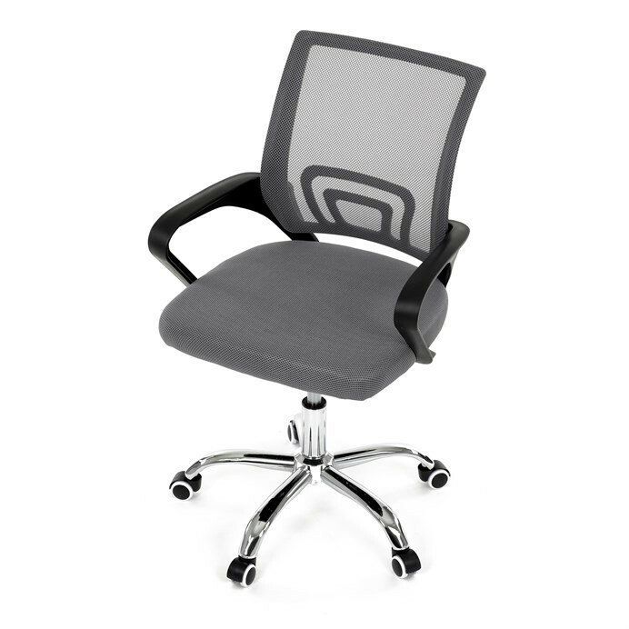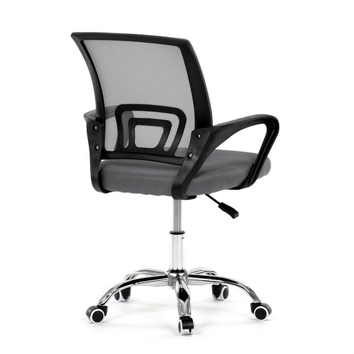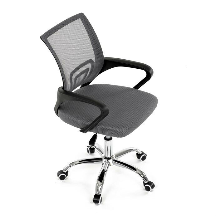 Moderná kancelárska stolička ponúka štýlový dizajn a pohodlie pre každodennú prácu. Operadlo je potiahnuté priedušnou sivou sieťovinou (mesh), ktorá zabezpečuje optimálnu ventiláciu a podporu chrbta. Pevné čierne plastové podrúčky poskytujú komfort pri sedení, zatiaľ čo stabilitu stoličky zaisťuje chrómový kríž s kolieskami pre ľahký pohyb. Vďaka kombinácii kvalitných materiálov a elegantného vzhľadu je ideálnou voľbou do kancelárie aj domácej pracovne.