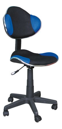 Jednoduchá kancelárska stolička Q-G2 Vám ponúkne minimalistický dizajn v čierno-modrom farebnom podaní. Kreslo je potiahnuté čierno-modrou koženkou a rám je v čiernom farebnom prevedení. Stolička ponúkne pekný dizajn a pohodlný posed.