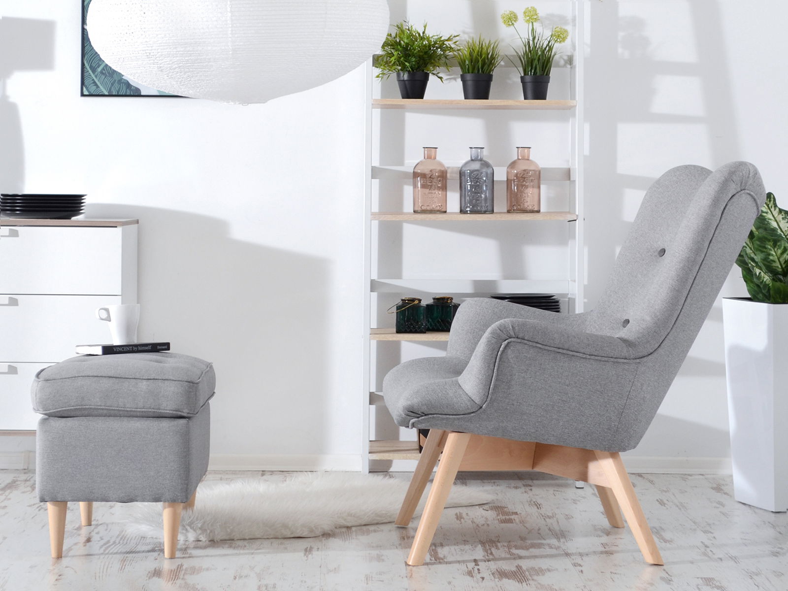 Dizajnové kreslo Florentino (sivá + dub)