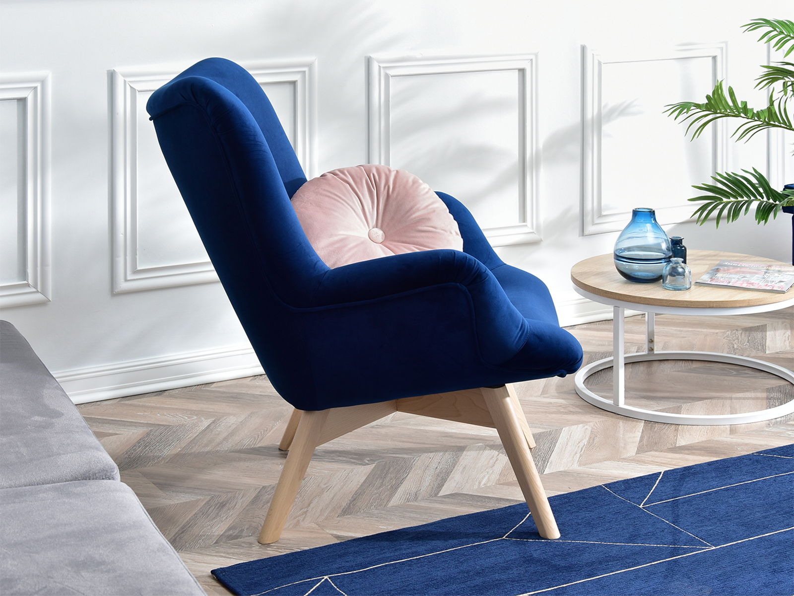 Dizajnové kreslo Florentino (tmavomodrá + dub)