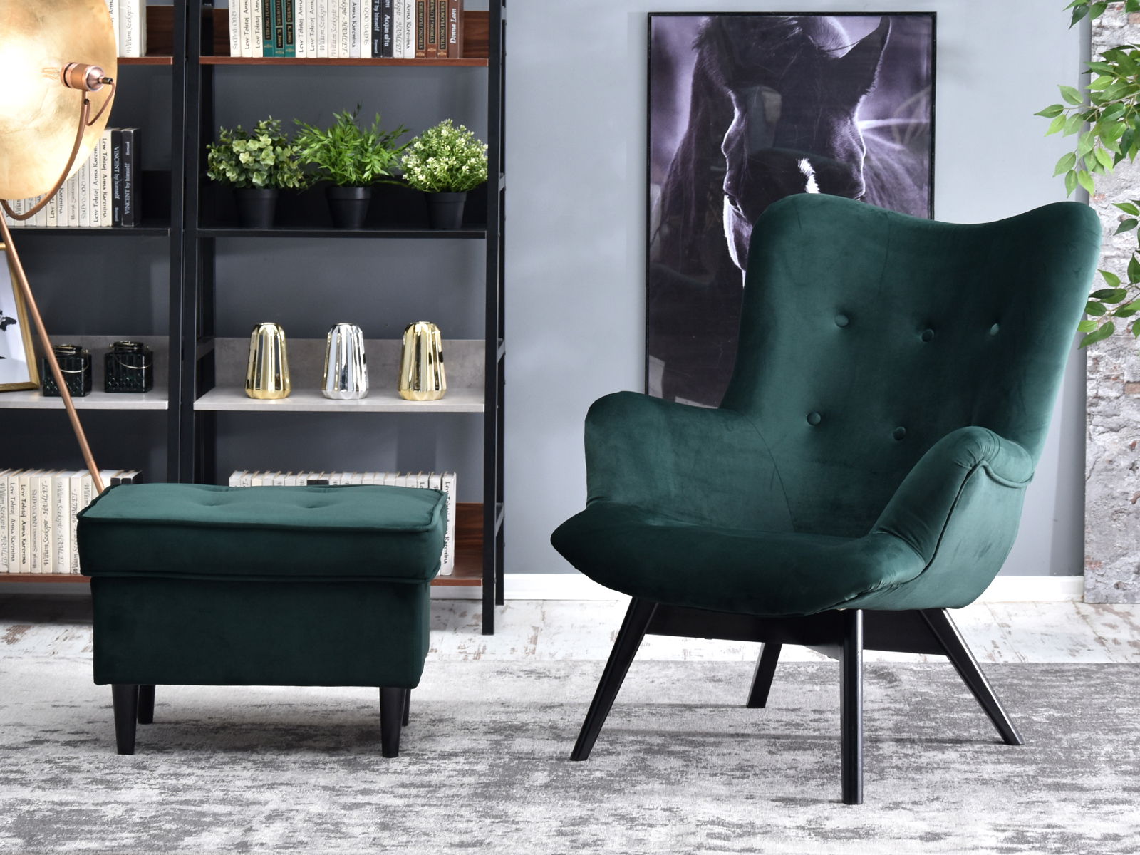 Dizajnové kreslo Florentino (tmavozelená + dub)