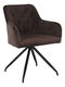 Túžite po modernej, štýlovej a pohodlnej jedálni? Stačí si zaobstarať otočnú stoličku Vavien, pohodlne sa usadiť a vychutnať si pokojné raňajky, chutný obed či pohár vína v kruhu najbližších až do posledného dúška. Stolička je čalúnená Velvet látkou v hnedom prevedení. Stabilitu zabezpečujú čierne kovové nohy. Veleza sa pýši funkciou otáčania, takže svoje uplatnenie nájde aj v domácej pracovni či kancelárii. Jej jedinečné telo je prešívané a zdobené dekoratívnymi gombíkmi. Charizmatický a útulný domov spočíva vo výbere správneho nábytku a stolička Vavien medzi takýto nábytok jednoznačne patrí.