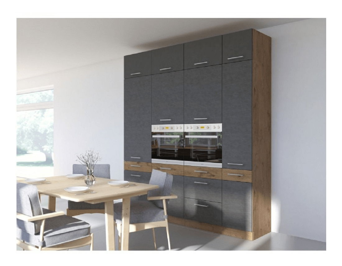 Dolná drezová kuchynská skrinka Velaga za 80 € s výškou 82 cm, šírkou 80 cm a hĺbkou 52 cm je ideálnou voľbou pre každú kuchyňu. Skrinka je vyrobená z kvalitných materiálov, ktoré zaručujú jej odolnosť a dlhú životnosť. Sivá matná a dub lancelot farba dodávajú skrinke moderný vzhľad a zároveň sa dokonale hodia k ostatným elementom kuchyne. Skrinka má dve posuvné zásuvky, ktoré umožňujú efektívne uskladnenie riadu a kuchynských pomôcok. Skrinka je ľahko montovateľná a prichádza s kompletným montážnym materiálom. Je to skvelá kúpa, ktorá Vám prinesie praktické a štýlové riešenie pre Vašu kuchyňu.