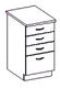 Dolná kuchynská skrinka s tromi plytkými zásuvkami a jednou hlbokou zásuvkou na spodku. Tenká rúčka v striebornej farbe.
