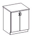 Dolná kuchynská skrinka s dvomi dvierkami a tenkými rúčkami v striebornej farbe.