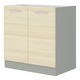 Dolná kuchynská skrinka Edison 80 D 2F BB je moderná dvojdverová skrinka v bielom svetlom dreve, vhodná pre tých, ktorí uprednostňujú praktickosť a jednoduchosť. Je vyrobená z drevotriesky laminovanej (biela a sivá) a MDF prednej steny (16 mm) s ABS hranami (1,7 mm). Úchyty sú plastové a farba kovu je 128 mm. Skrinka má univerzálne dvierka, ktoré sa dajú namontovať vpravo aj vľavo. Produkt má zlepé vyvŕtané otvory pre rukoväť a vnútro skrinky je vo farbe biela. Pracovná doska nie je súčasťou ceny, ale je k dispozícii na stránkach dodávateľa. Vyobrazená pracovná doska má hrúbku 38 mm a je v Platinum farbe.