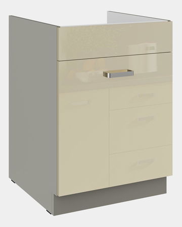 - Dolná kuchynská skrinka Kelyn 60 ZL 1S BB (korpus: lesk krémový + front: sivá)