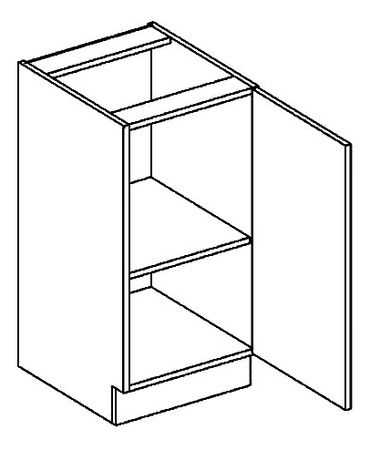 Dolná kuchynská skrinka s dvierkami a jednou poličkou v úložnom priestore. Vyobrazená skrinka je s pravým otváraním dvierok.