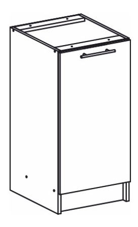 Dolná kuchynská skrinka vybavená jednými dvierkami. Dodávaná bez hornej pracovnej dosky, ktorú si však môžete prikúpiť v našom obchode.