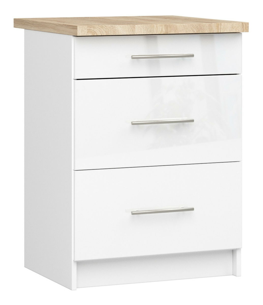 Dolná kuchynská skrinka Ozara S60 3SZ (biela + biely lesk)