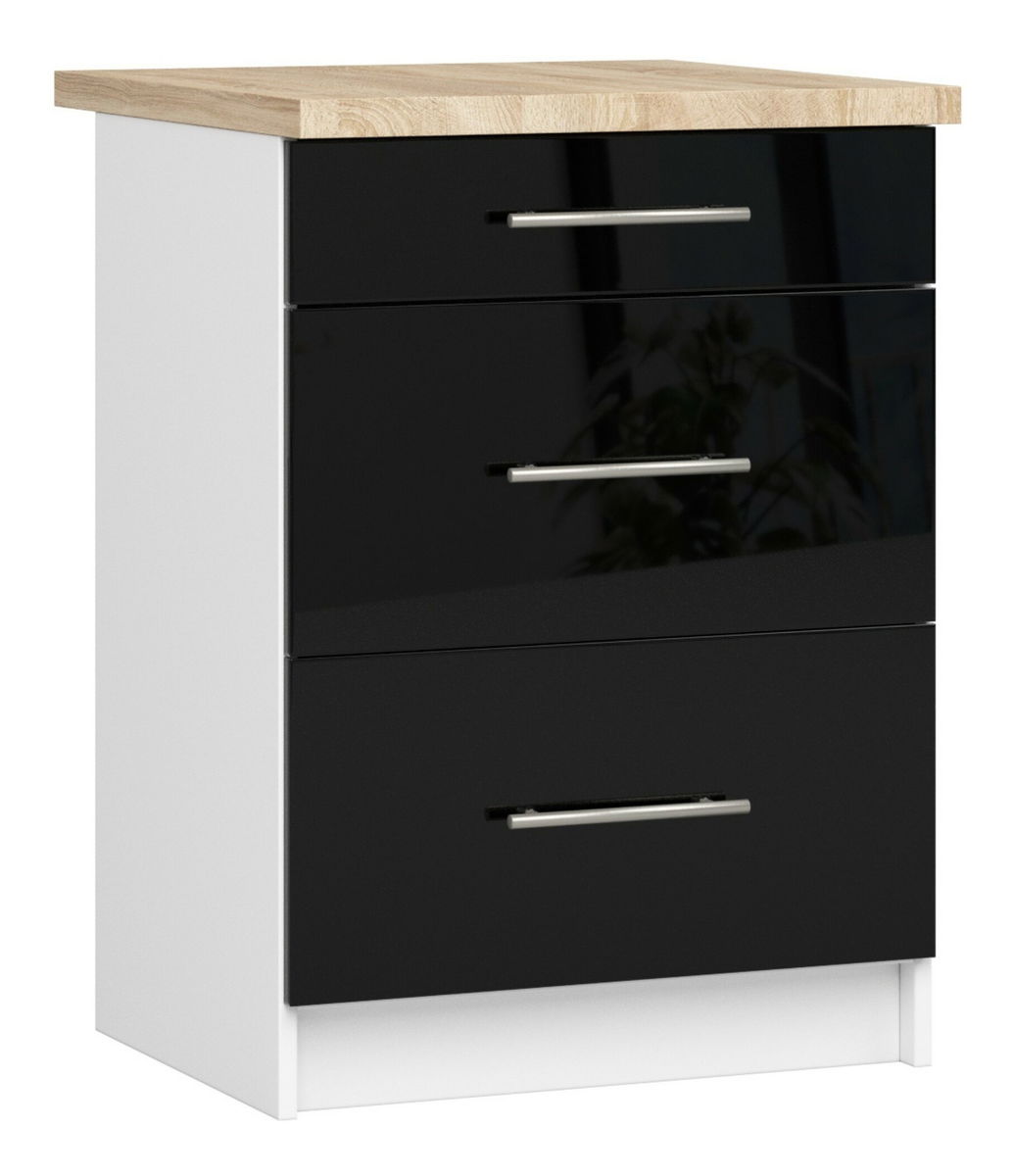 Dolná kuchynská skrinka Ozara S60 3SZ (biela + čierny lesk)