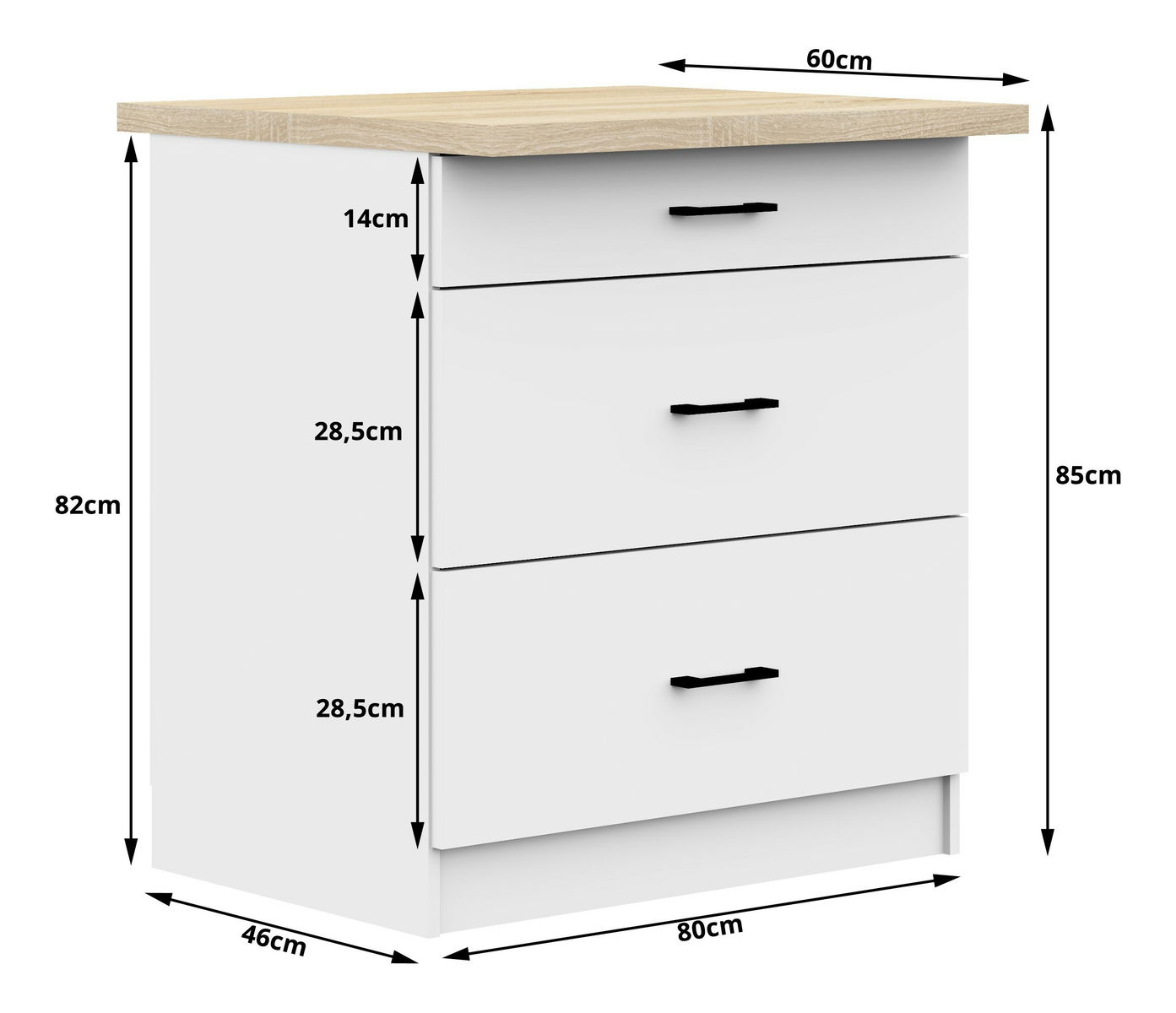 Dolná kuchynská skrinka Ozara S80 3SZ (biela)