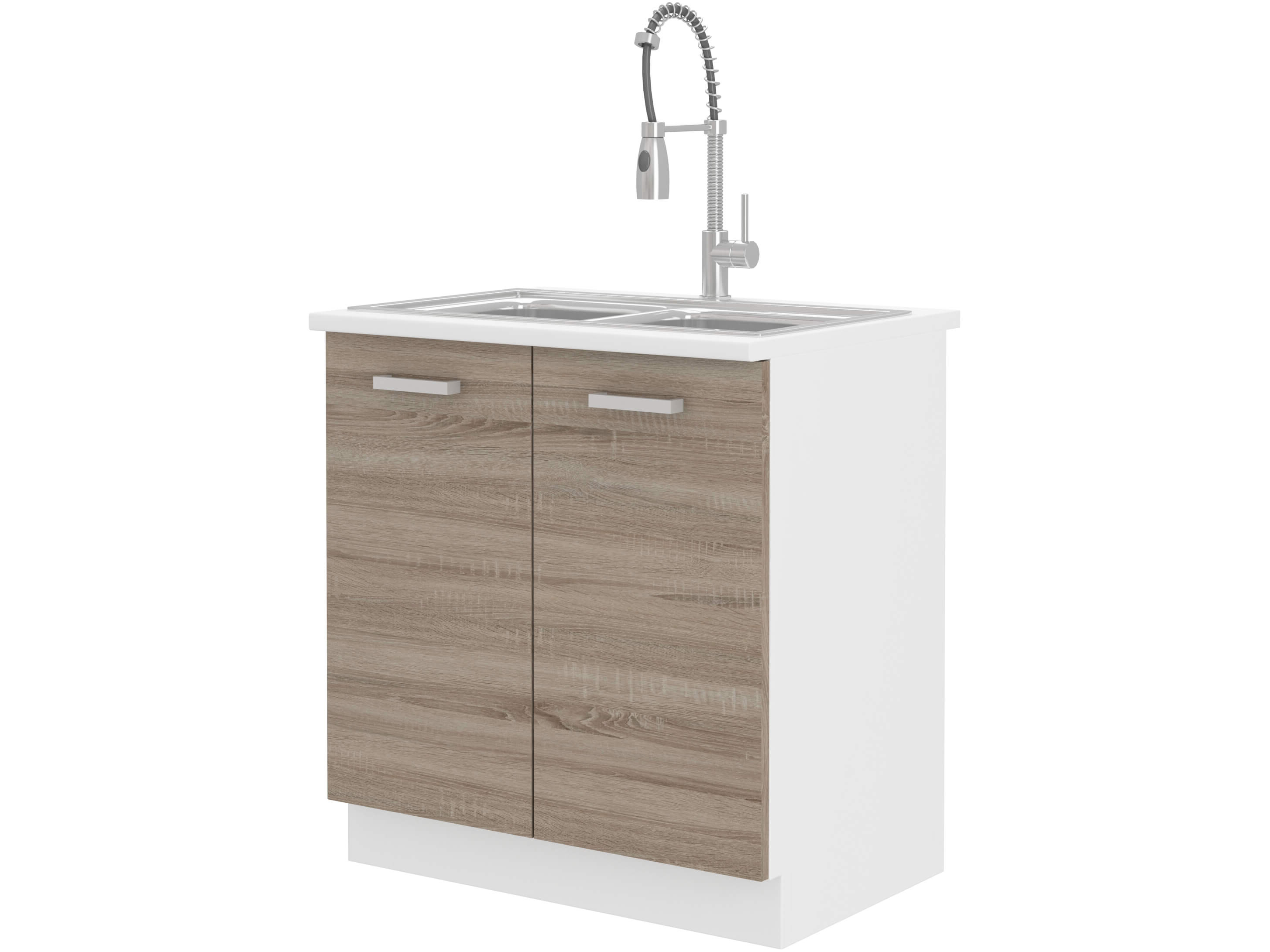 Dolná kuchynská skrinka pod drez Domton 80 ZL 2F ZB (biela + dub sonoma truflový) *výpredaj