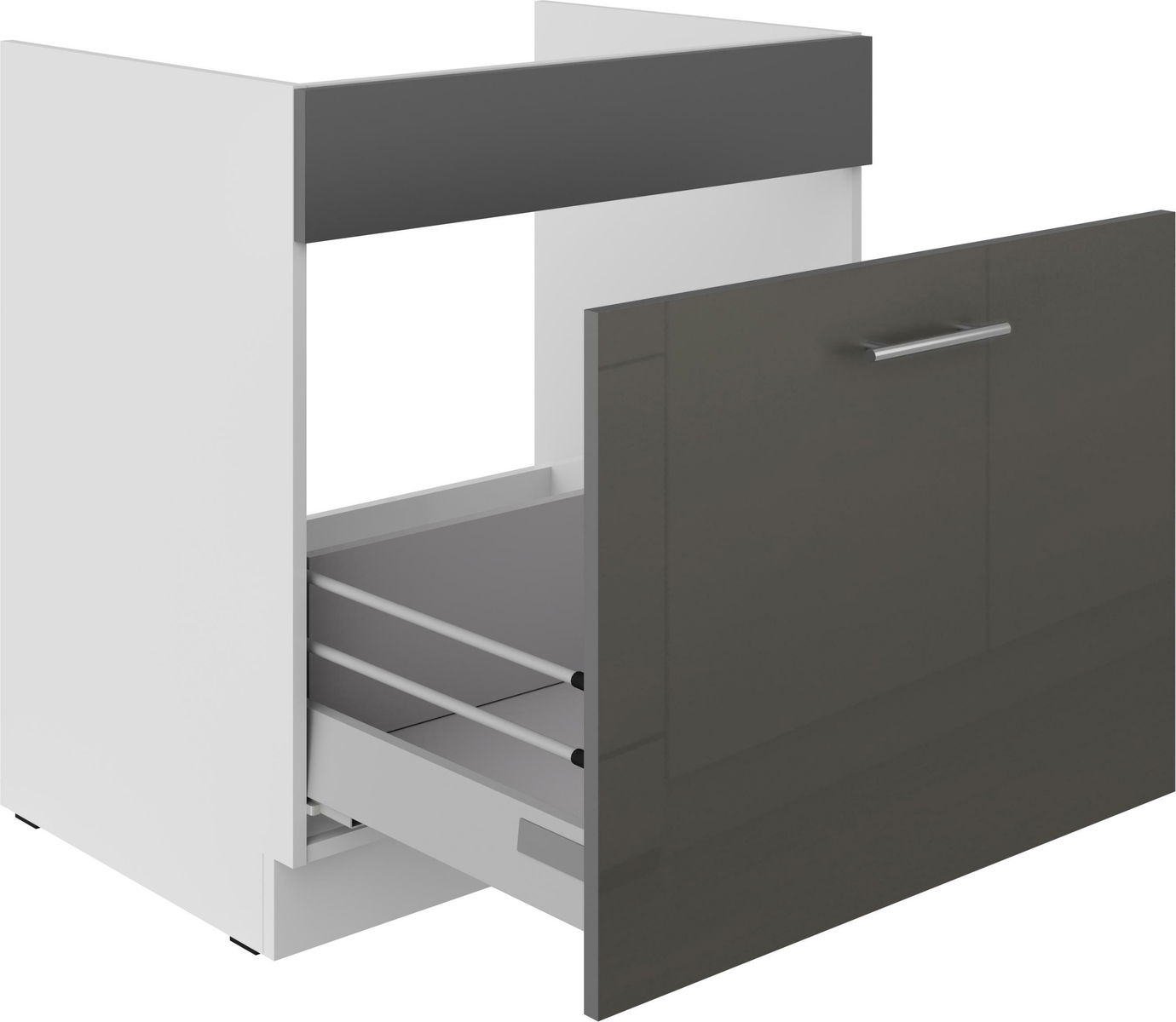 Dolná kuchynská skrinka pod drez Lavera 80 ZL 1S BB (korpus: biela + front: lesk sivý)