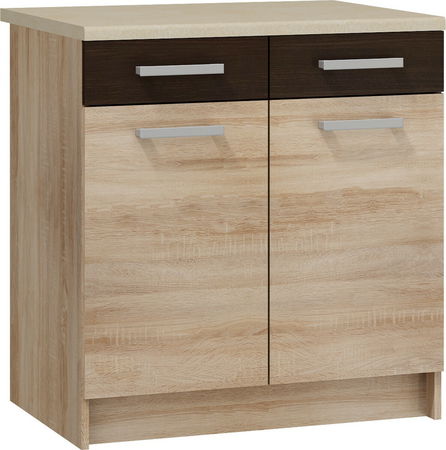 Dolná kuchynská skrinka s 2 hornými zásuvkami a dvomi spodnými dvierkami.