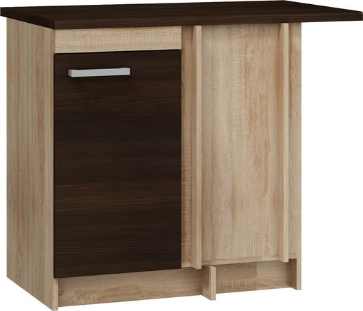 Dolná rohová kuchynská skrinka s jednými dvierkami. Skrinka je univerzálna, je možné ju poskladať ako ľavú alebo pravú.