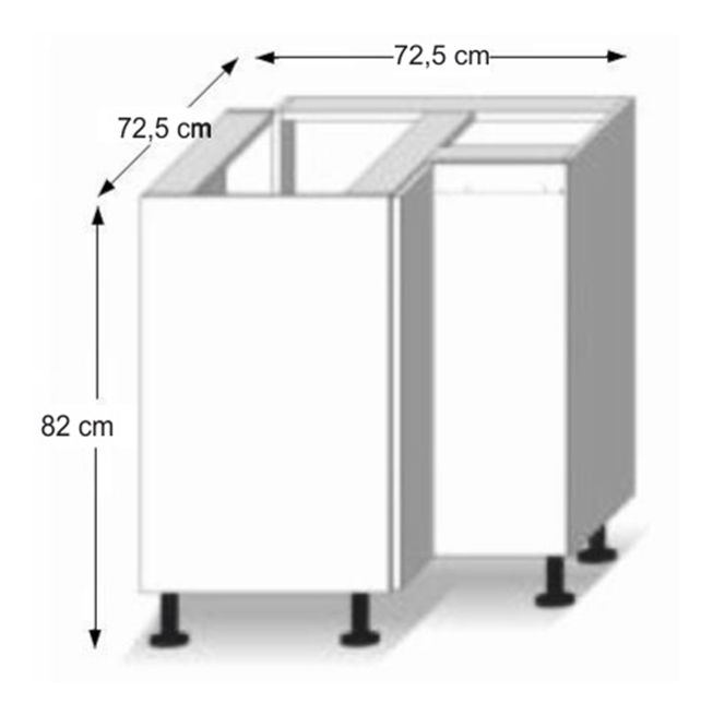 Dolná rohová skrinka DR L Lilouse s výškou 82 cm, šírkou 72,5 cm a hĺbkou 72,5 cm je modernou a kvalitnou súčasťou kuchynského sektorového systému. Je vyrobená z laminovanej drevotriesky v extra vysokom lesku High Gloss, s hrúbkou pracovnej dosky 38 mm a dvierok 18 mm. Skrinka je dodávaná s pracovnou doskou a dolnou lištou.