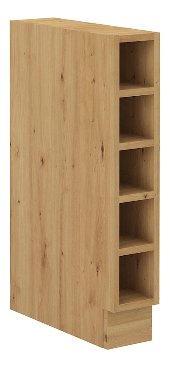 Spodná otvorená skrinka Lesana 2 v prevedení dub artisan s výškou 82 cm, šírkou 15 cm a hĺbkou 50 cm je skvelým doplnkom do vašej kuchyne. Táto kuchynská linka ponúka moderný dizajn a praktické riešenia. Lesana je vyrobená z kvalitnej laminovanej drevotriesky DTD, čo zaručuje jej odolnosť voči mechanickému poškodeniu a dlhú životnosť. Podstatou čistej linky sú biele a dub artisan farebné prevedenie. Táto skrinka je bez dvierok a obsahuje štyri police, ktoré poskytujú dostatok miesta na uskladnenie potrebných vecí. Spodná policová skrinka Lesana 2 je dodávaná vrátane dolnej lišty (sokla), ktorú môžete ľahko namontovať. Pracovná doska sa nezahrňuje do dodávky, no môžete si ju dokúpiť v prevedení dub artisan alebo marmur roma za cenu 53 EUR/m. S touto skriňou získate štýlové a praktické riešenie pre vašu kuchyňu.