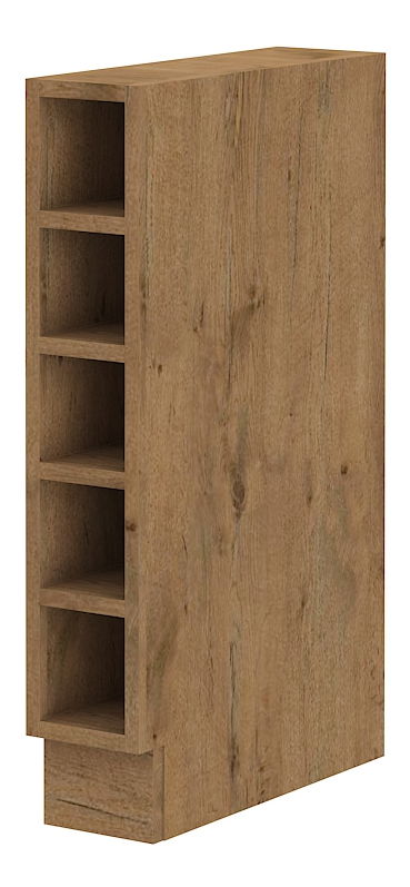 Dolný kuchynský regál na koš Virion 15 D OTW BB (dub lancelot) s výškou 82 cm, šírkou 15 cm a hĺbkou 50 cm, je moderný regál so 3 odkladacími priestormi, ktorý je univerzálny a slúži na uloženie pohárov, dóz s potravinami, koreničiek a dekorácií. Regál je vyrobený z laminovanej drevotriesky (16 mm) a má ABS hrany. V regáli je systém tichého zatvárania a vnútro skrine je vo farbe Dub Lancelot. Ponúkame Vám zmes dizajnových skriniek vo farbe biela, tmavá, šedá a bordová v kombinácii s dubom Lancelot a výber je na vás a vašej fantázii. Pracovná doska nie je súčasťou ceny, ale nájdete ju na našej stránke v ponuke.