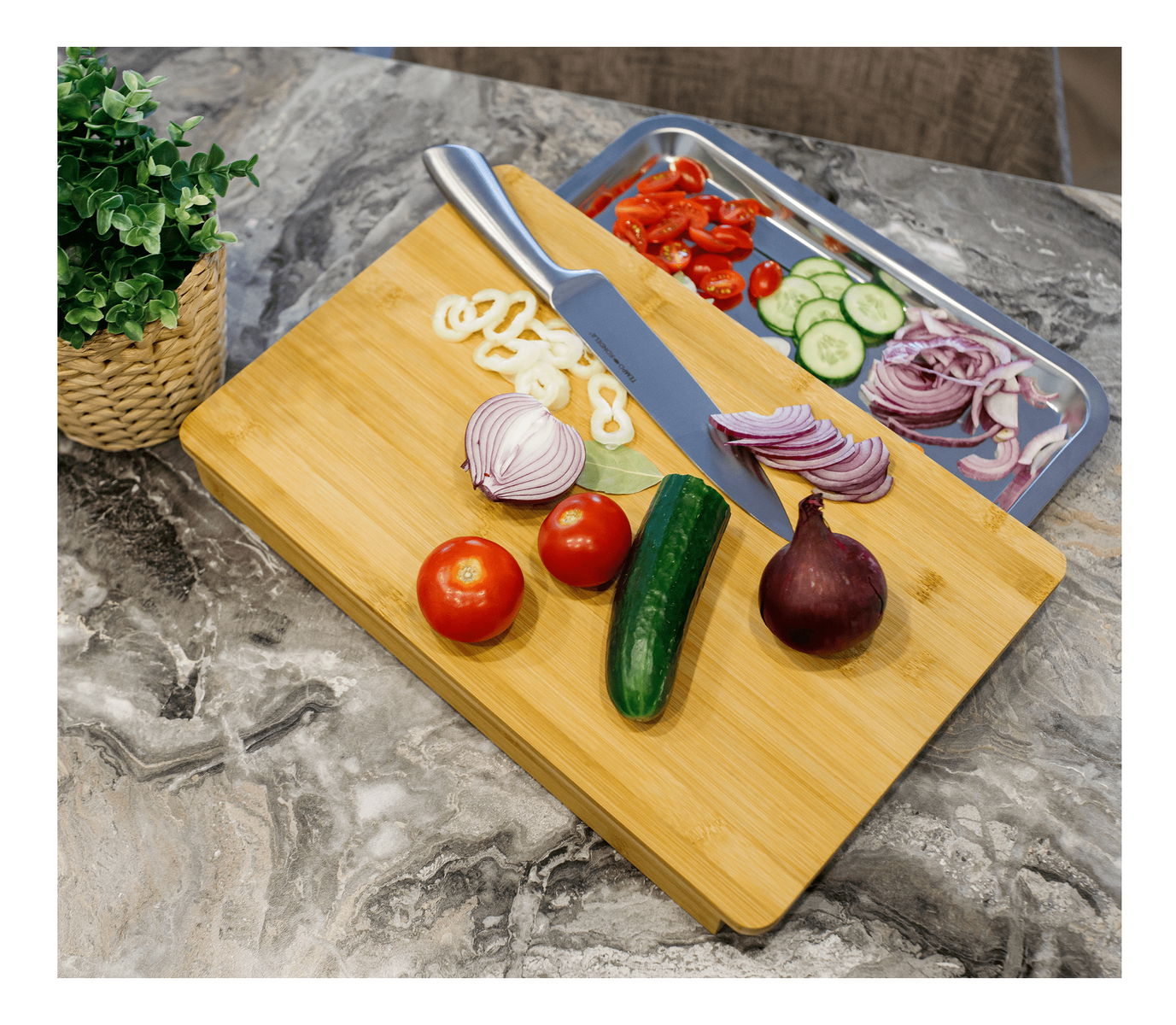 Doska na krájanie so zásuvkou Tarosh 1 (bambus + oceľ)