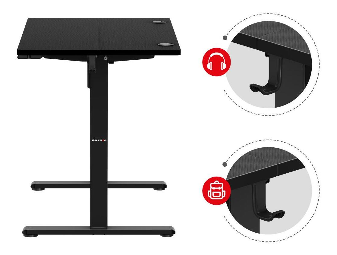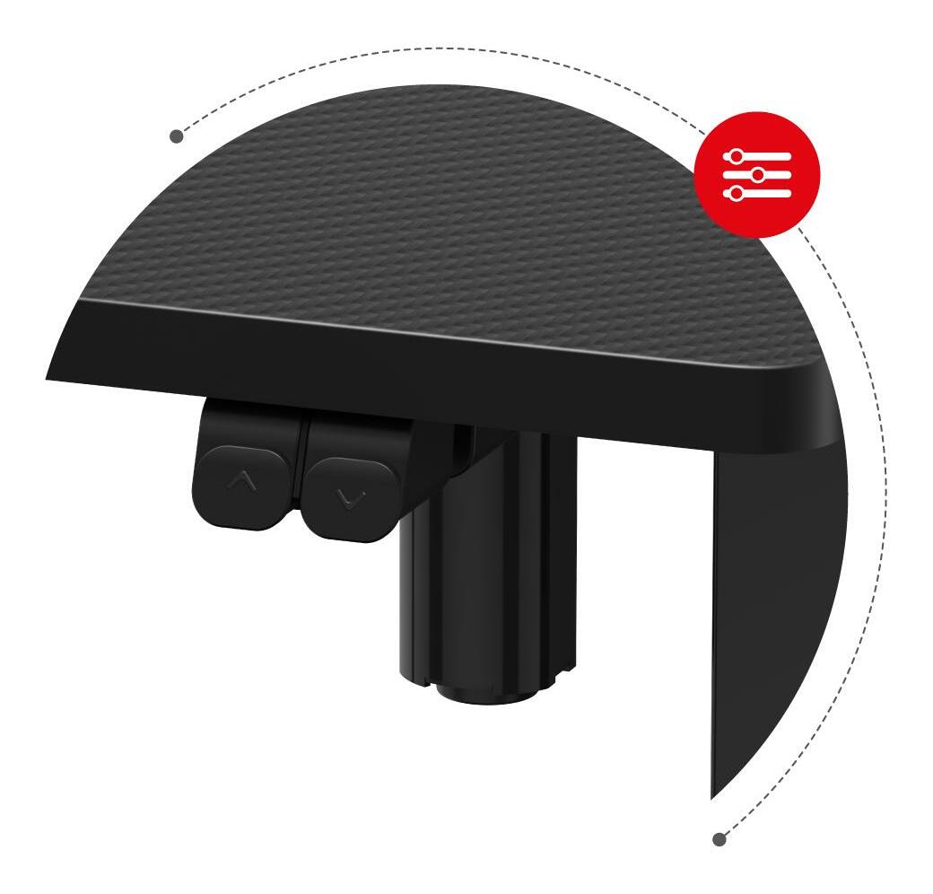 Stolová doska so šírkou 100 cm sa perfektne hodí do každej miestnosti – do izby tínedžera, obývačky alebo domácej pracovne. Skvele funguje aj v kanceláriách a coworkingových priestoroch. Široká škála nastavení výšky stola umožňuje jednoduché prispôsobenie stola individuálnym potrebám každého zamestnanca. Stôl s nastaviteľnou výškou hornej časti je dokonalým spoločníkom na mnoho hodín hrania, maratónov a intenzívnej práce. Vďaka možnosti spustiť a zdvihnúť dosku stola môžete kedykoľvek zaujať pohodlnú polohu. Výška stola je nastaviteľná od 72 do 118 cm, čo umožňuje prácu v stoji alebo v sede. Ovládací panel pozostávajúci iba z dvoch tlačidiel umožňuje zmeniť výšku dosky stola jedným kliknutím. Bez toho, aby si sa pohol zo svojho miesta. Stolová doska s hrúbkou 15 mm, vyrobená z odolnej MDF dosky, zaisťuje stabilitu aj pri veľmi vysokom tlaku. Vďaka Carbon povlaku je odolný proti poškriabaniu a ľahko sa udržiava čistý. Dva funkčné držiaky vám pomôžu usporiadať priestor okolo pracovného stola: na slúchadlá a tašku alebo batoh. Vešiaky umiestnené na oboch stranách pracovnej dosky vám pomôžu čo najlepšie využiť dostupný priestor.
