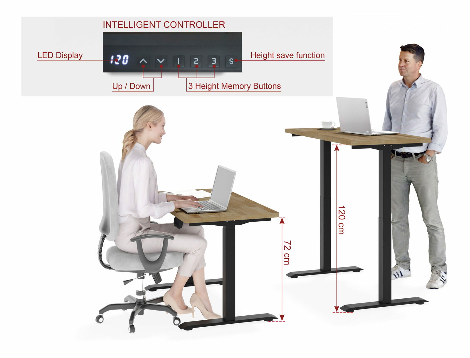 ZobraziťDoska stola je vyrobená z vybranej dubovej dyhy, chránenej ekologickou impregnáciou na báze prírodných olejov. Možnosť pracovať v sede alebo v stoji. Nastavenie výšky a pamäťová funkcia. Stabilný rám, ktorý nespôsobuje vibrácie. Antikolízny systém – mechanizmus zdvíhania stola sa okamžite zastaví pri narazení na prekážku, vibrácie alebo naklonenie dosky stola. Univerzálny ovládač, možnosť montáže v ľubovoľnej polohe na ľavej alebo pravej strane. Ochrana proti prehriatiu mechanizmu – správa „HOT“ na displeji signalizuje prehriatie. Systém automaticky zastaví prevádzku na 18 minút, aby sa predišlo poškodeniu motora. Systém je vybavený rodičovským zámkom – po aktivácii sú všetky funkcie tlačidiel deaktivované.