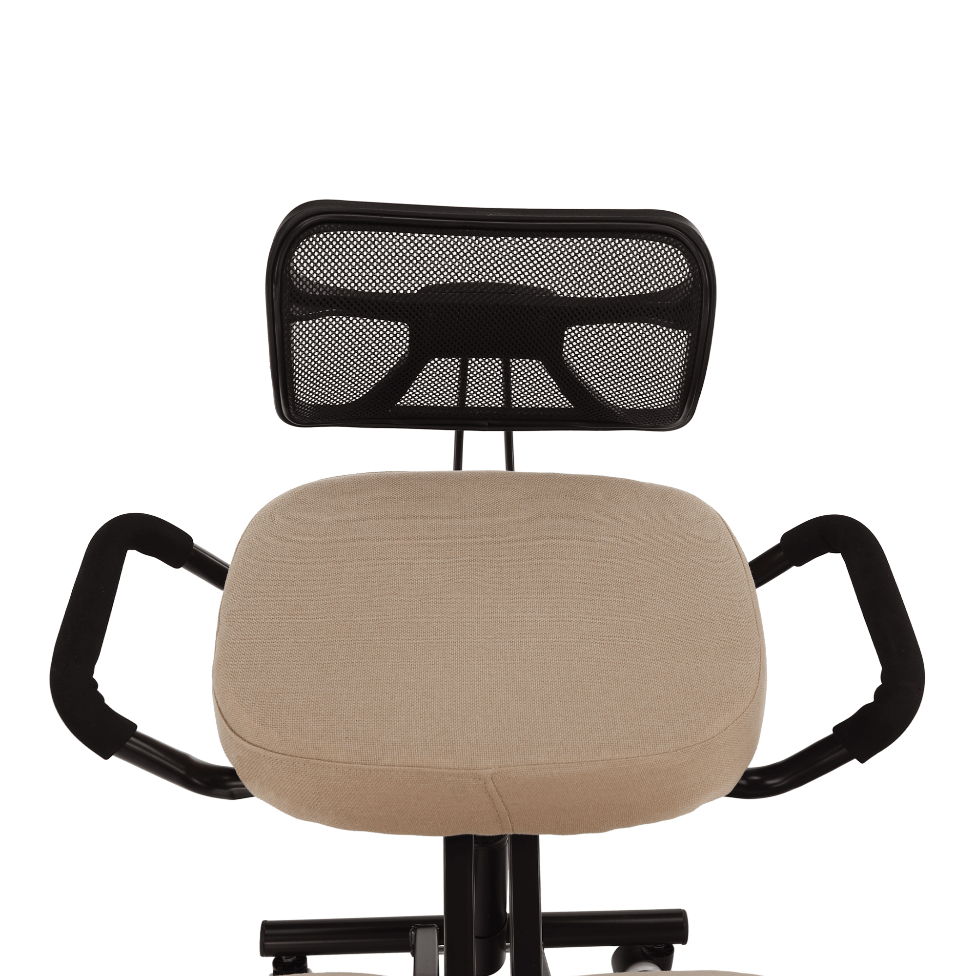 Ergonomická kancelárska stolička Rusu je vyrobená z kovu a látky, čo zaručuje jej stabilitu a dlhú životnosť. Béžová farba je nadčasová a pôsobí veľmi trendovo v kombinácii s čiernou. Kľakačka má nastaviteľnú výšku sedu a opierky na ruky, bedrovú opierku a pogumované kolieska, ktoré chránia podlahu pred poškodením. S touto kancelárskou stoličkou bude vaša práca pod písacím stolom oveľa pohodlnejšia.