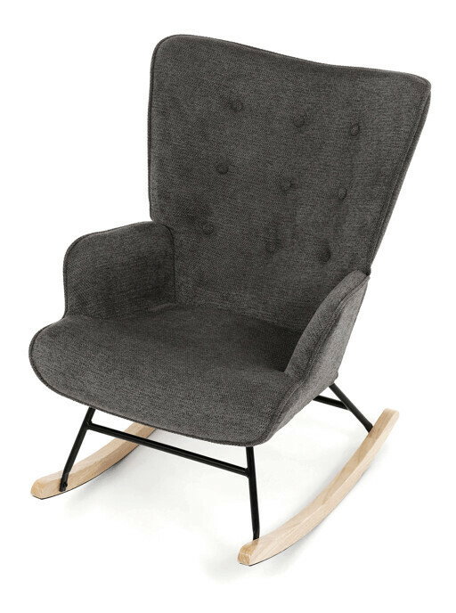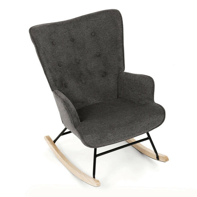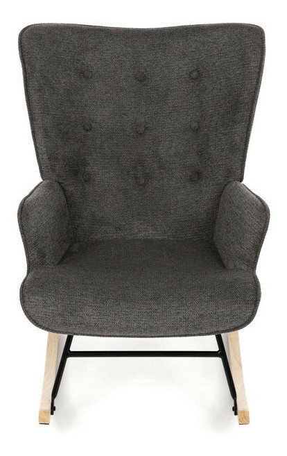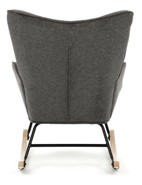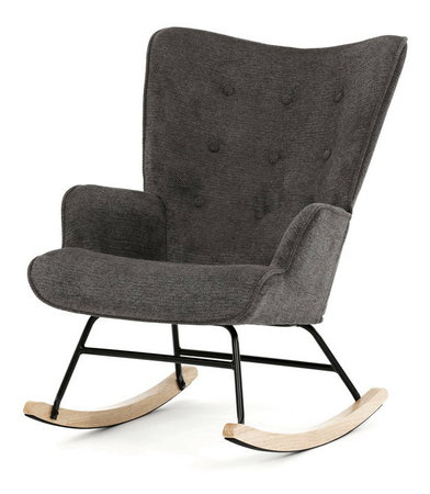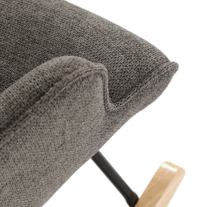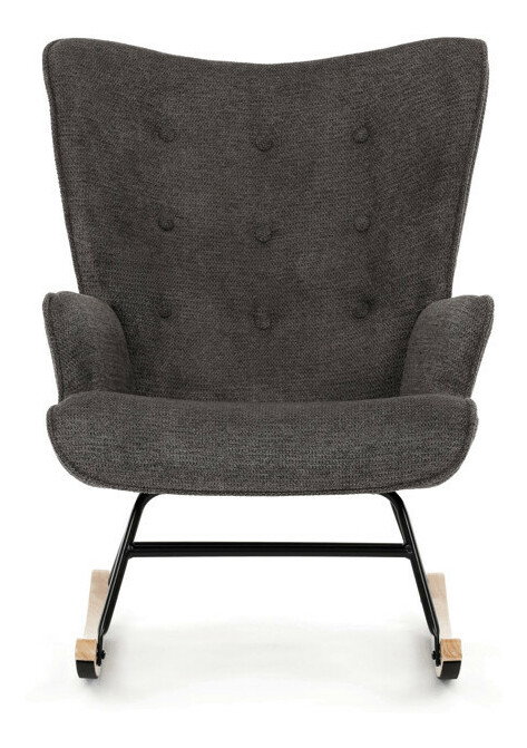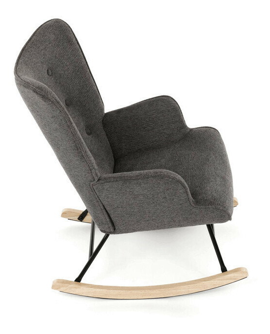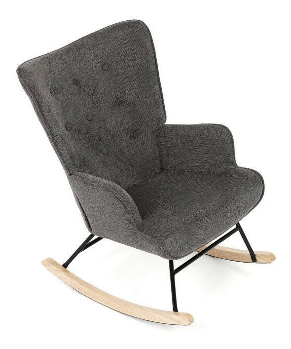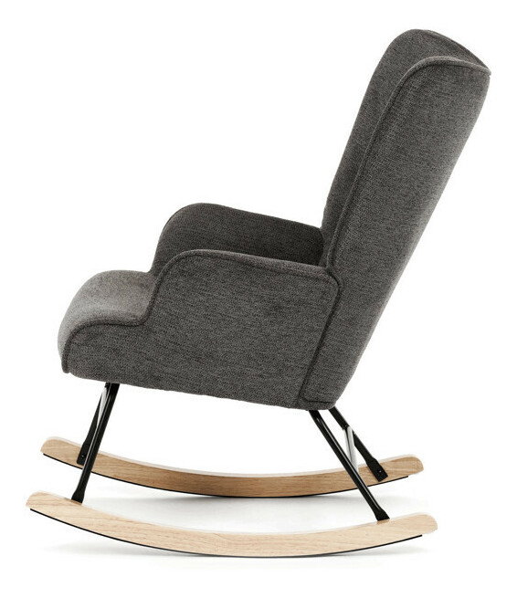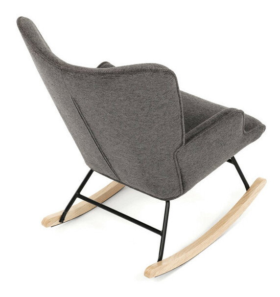 Hojdacie kreslo v sivej farbe je potiahnuté prémiovou látkou, ktorá ponúka príjemný povrch a jednoduchú údržbu. Sedák a operadlo sú ergonomicky tvarované s decentným prešitím, ktoré dodáva kreslu elegantný vzhľad. Pevné nohy sú vyrobené z kombinácie čierneho kovu a masívneho kaučukovníka, čo zabezpečuje stabilitu a dlhú životnosť. Kreslo je vybavené hojdacím mechanizmom, ktorý umožňuje príjemné a plynulé hojdanie pre relaxáciu. Podrúčky sú pevné a čalúnené rovnakou látkou ako sedák, čo zvyšuje komfort pri sedení.