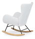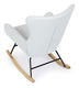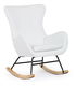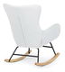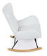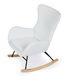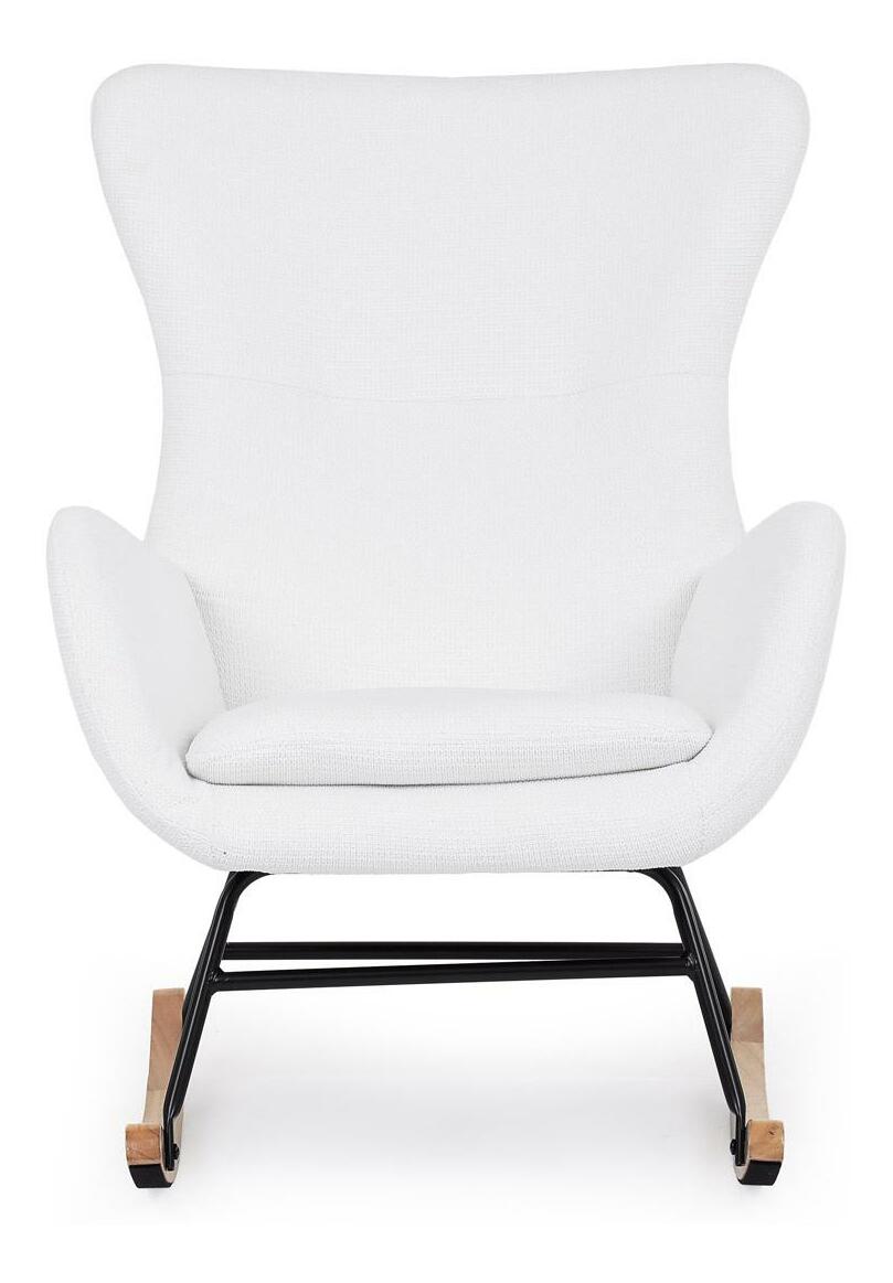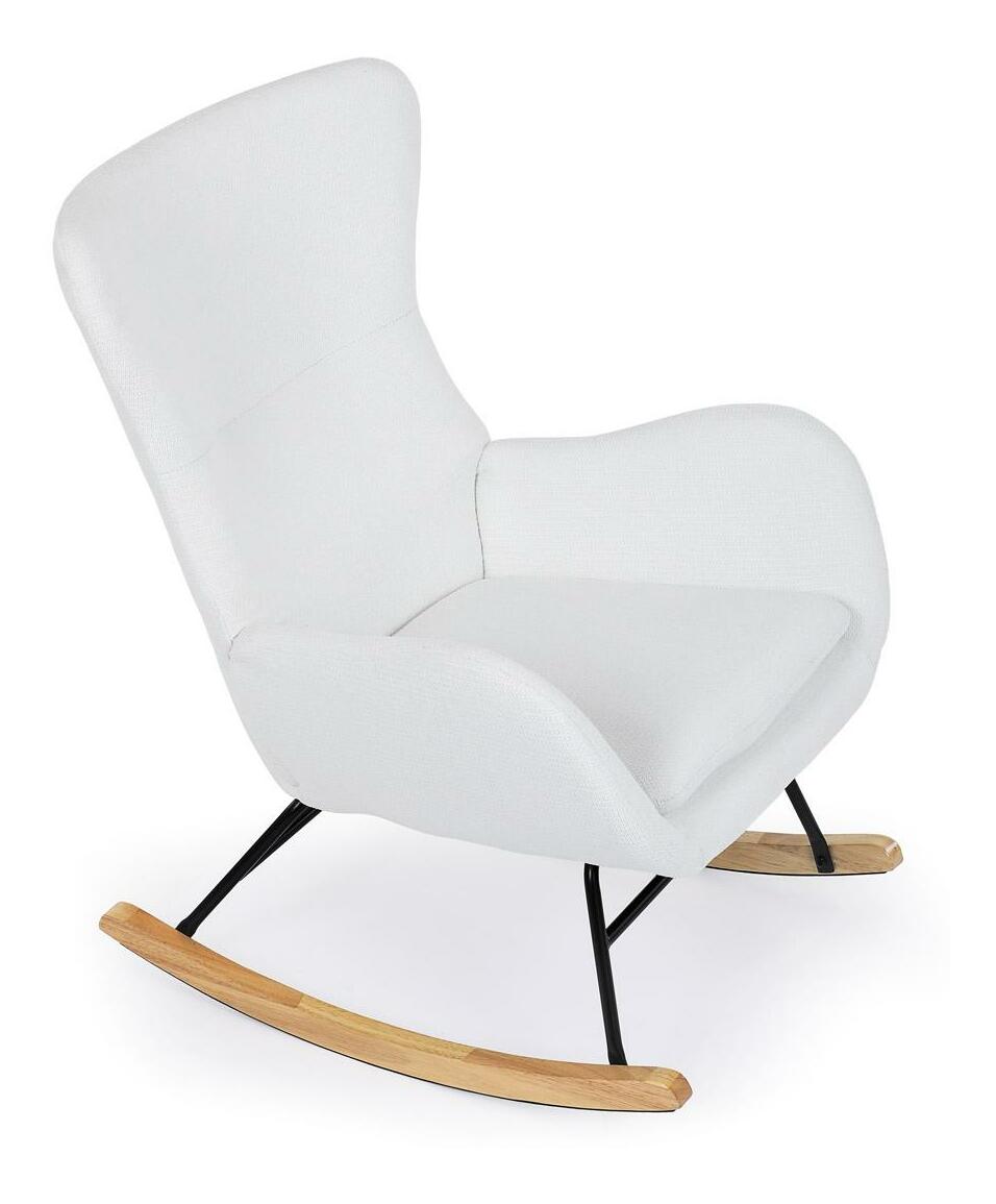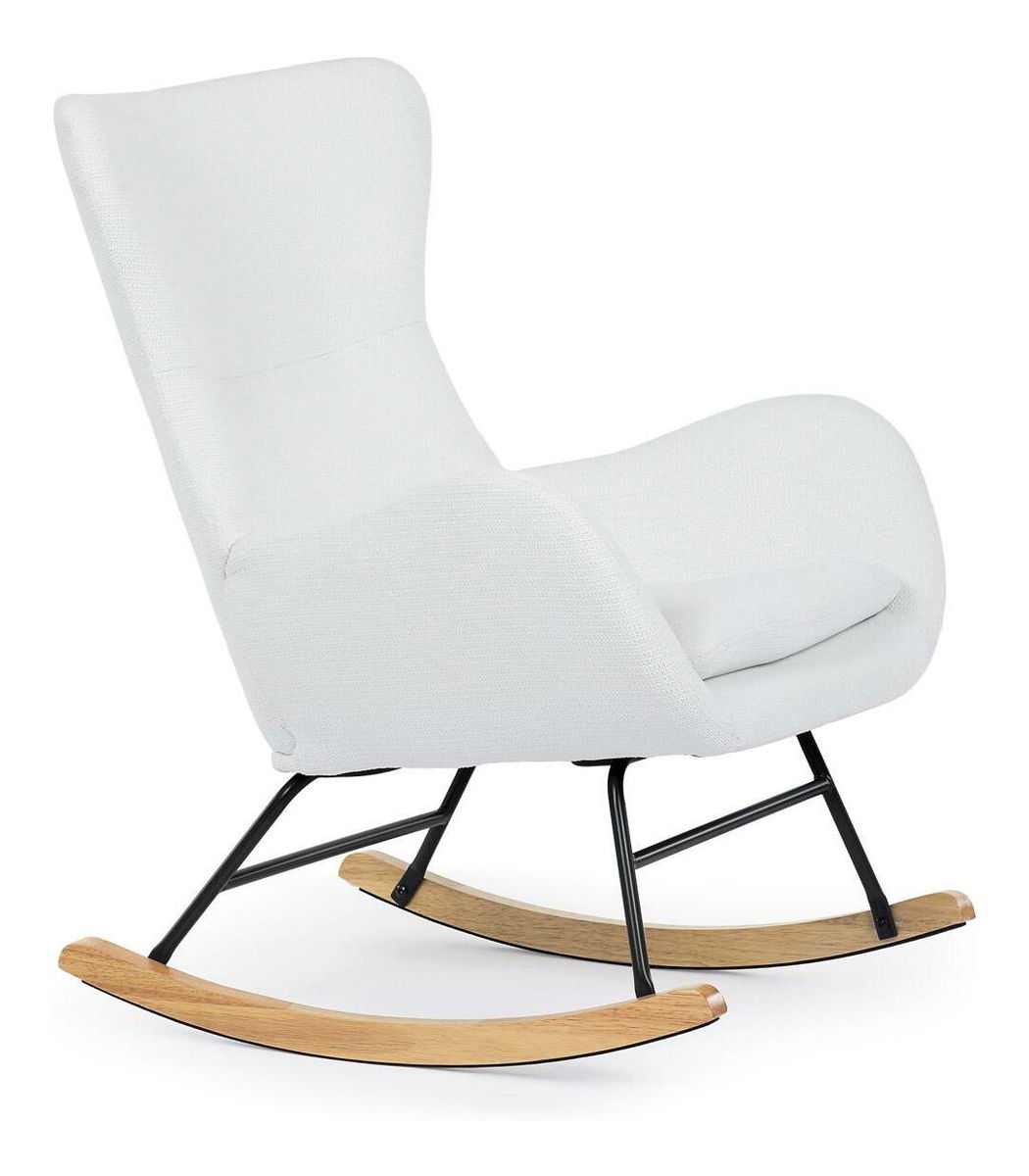 Vložte do svojho interiéru nádych elegancie s našou modernou hojdacou stoličkou. Potešujúca kombinácia čistej bielej hladkej látky a prírodných drevených nôh dodáva miestnosti sofistikovaný vzhľad. Robustné masívne nohy zaisťujú stabilitu, zatiaľ čo pohupový podnož ponúka pohodlný a upokojujúci zážitok pri hojdaní. Perfektný pre relaxáciu v obývacej izbe alebo pracovni. Táto hojdacia stolička je ideálnym prvkom, ktorý spája štýl a komfort pre akýkoľvek moderný interiér.