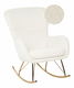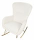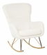Vďaka tomuto elegantnému hojdaciemu kreslu vynikne zariadenie vášho interiéru. Kreslo je vyrobené z kvalitnej buklé látky, je veľmi mäkké a príjemné na dotyk, vďaka čomu je skvelým doplnkom do detskej izby, obývacej izby alebo väčšej spálne. Navyše je veľmi odolné a nevyžaduje si každodennú údržbu. Jeho biela farba dokonale ladí so zlatými kovovými nohami. Keďže má veľké operadlo a široké sedadlo, bude dokonalým spoločníkom počas odpočinku po dlhom a náročnom dni.