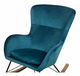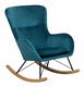 Kombinácia komfortu a štýlu. Toto hojdacie kreslo inšpirované štýlom glamour dokonale doplní moderný či klasický interiér. Modré zamatové čalúnenie je odolné a nenáročné na údržbu. Sedadlo je postavené na pevnej konštrukcii s drevenými spodnými časťami, ktoré zaručujú príjemné hojdanie. Vďaka hrubej a mäkkej výplni výborne poslúži ako kreslo pri krbe alebo v detskej izbe.