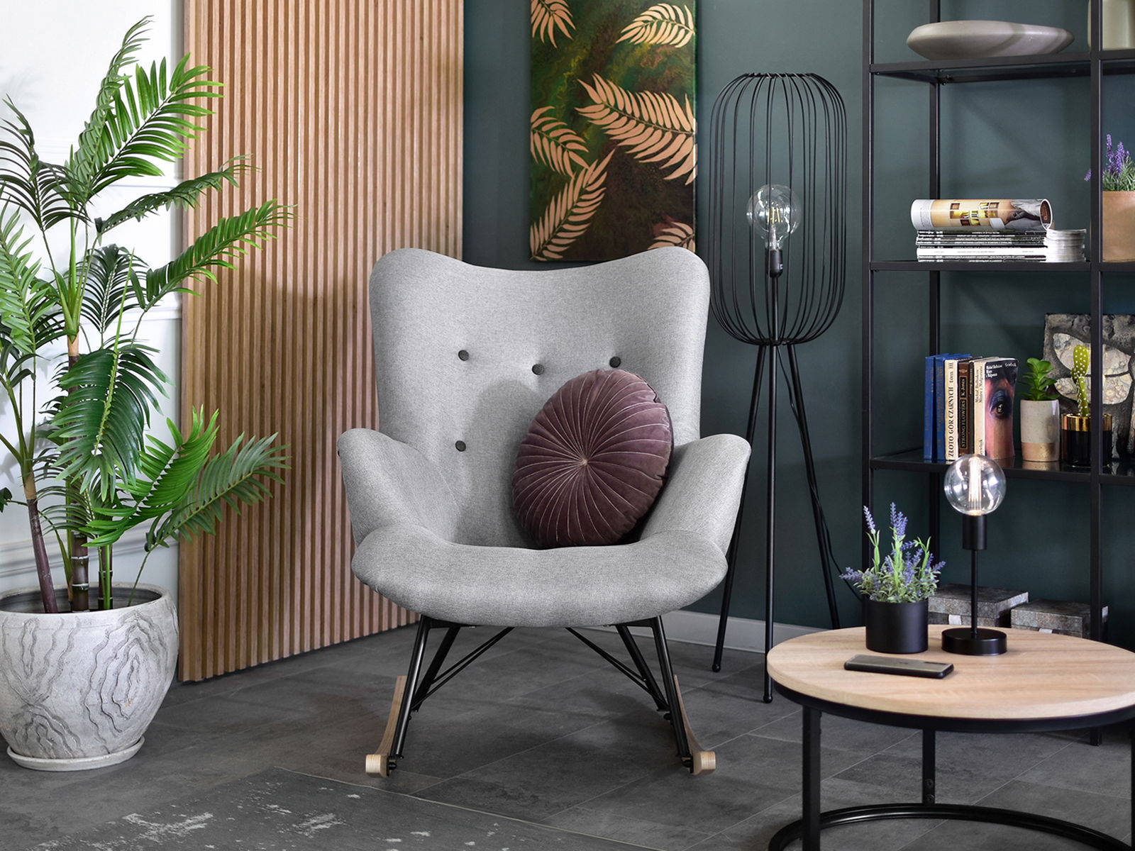 Hojdacie kreslo Laurentino (sivá + čierna)